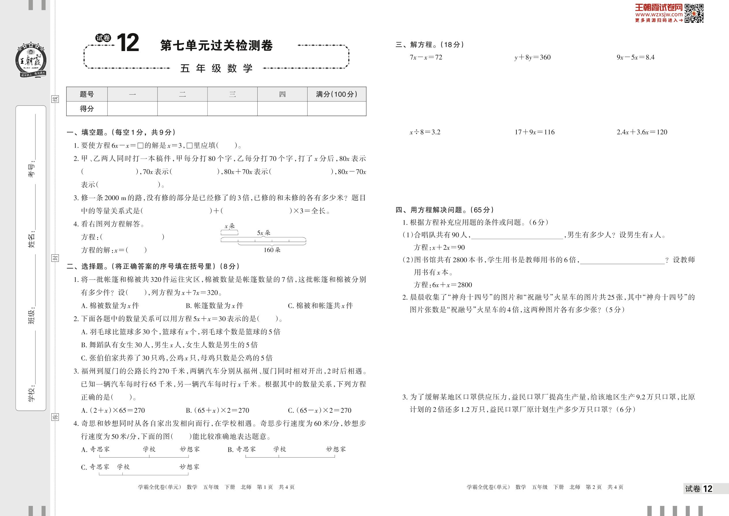 2023下册五年级数学北师版 试卷12 第七单元过关检测卷