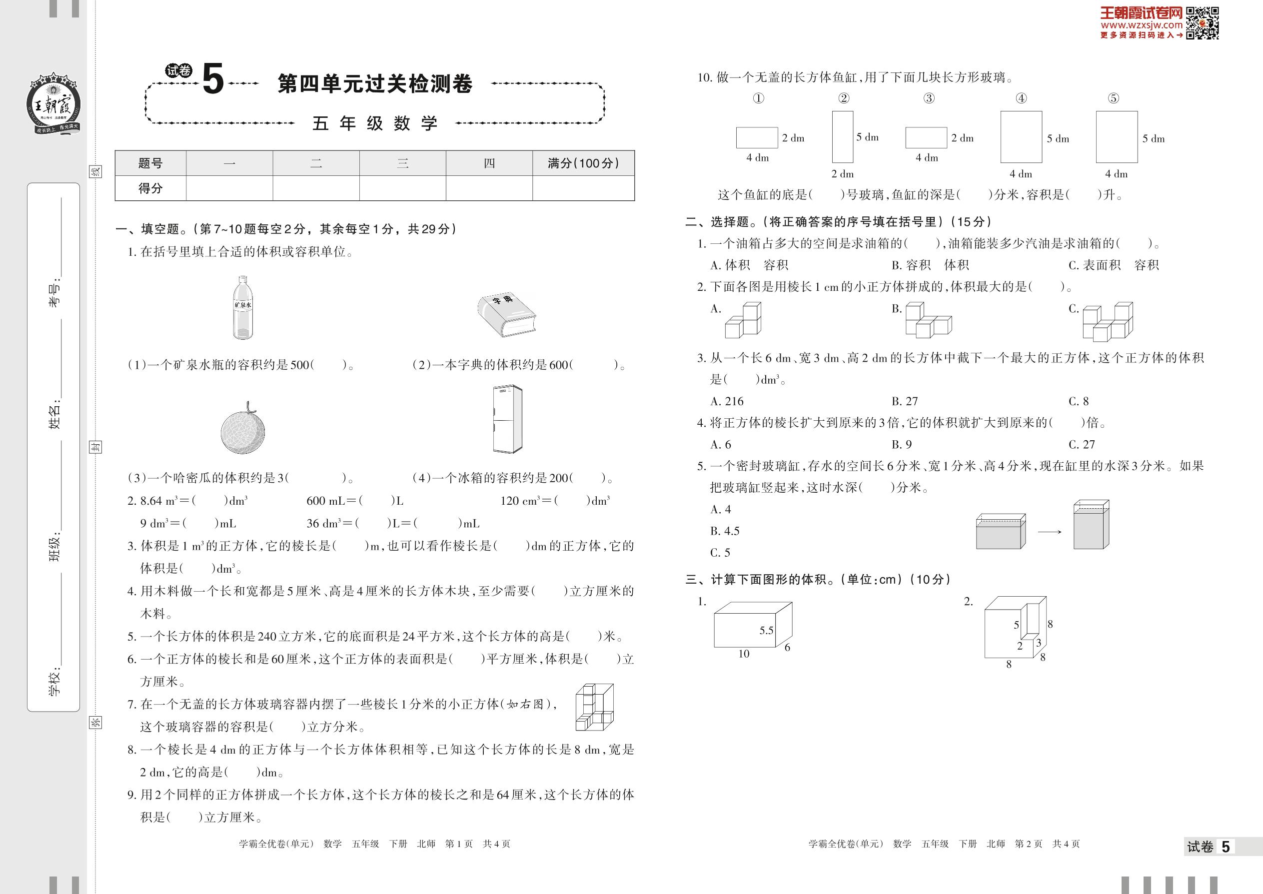 2023下册五年级数学北师版 试卷5 第四单元过关检测卷