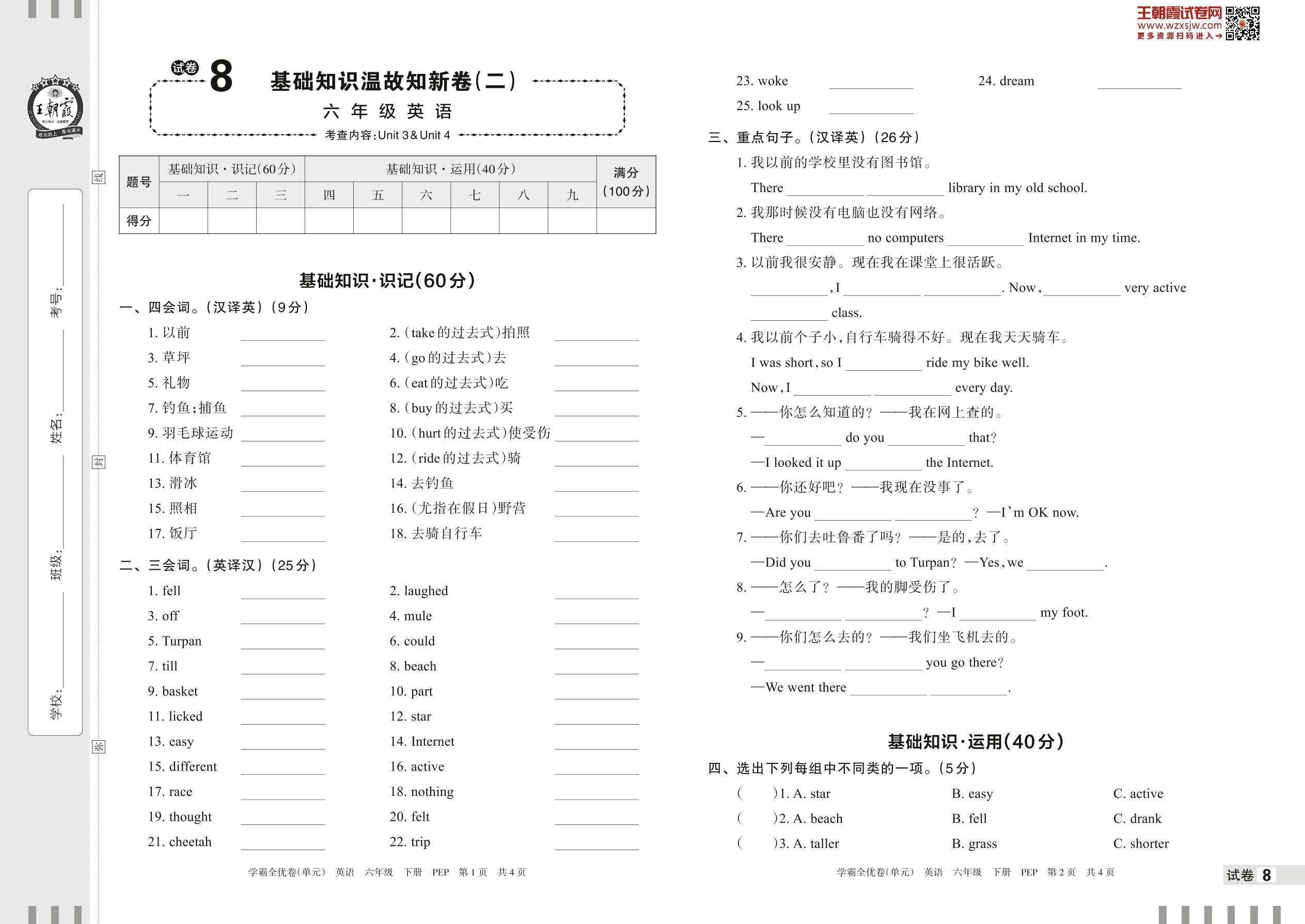 2023下册六年级英语人教PEP版 试卷8 基础知识温故知新卷(二)