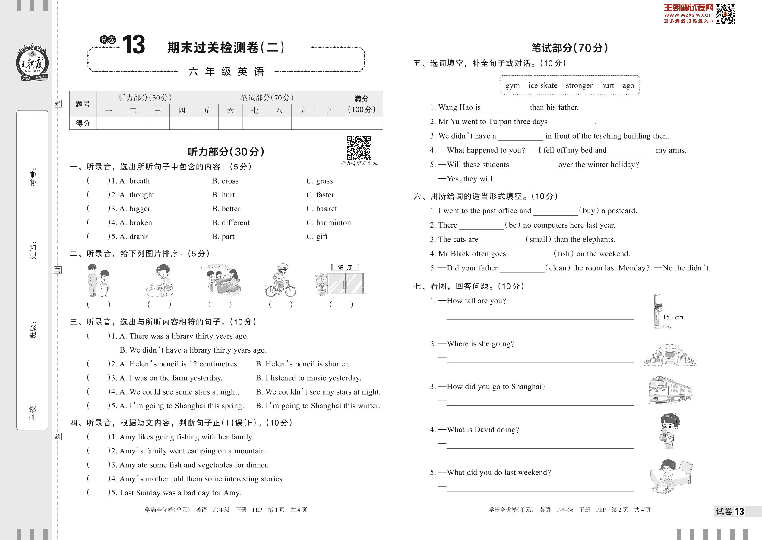 2023下册六年级英语人教PEP版 试卷13 期末过关检测卷(二)