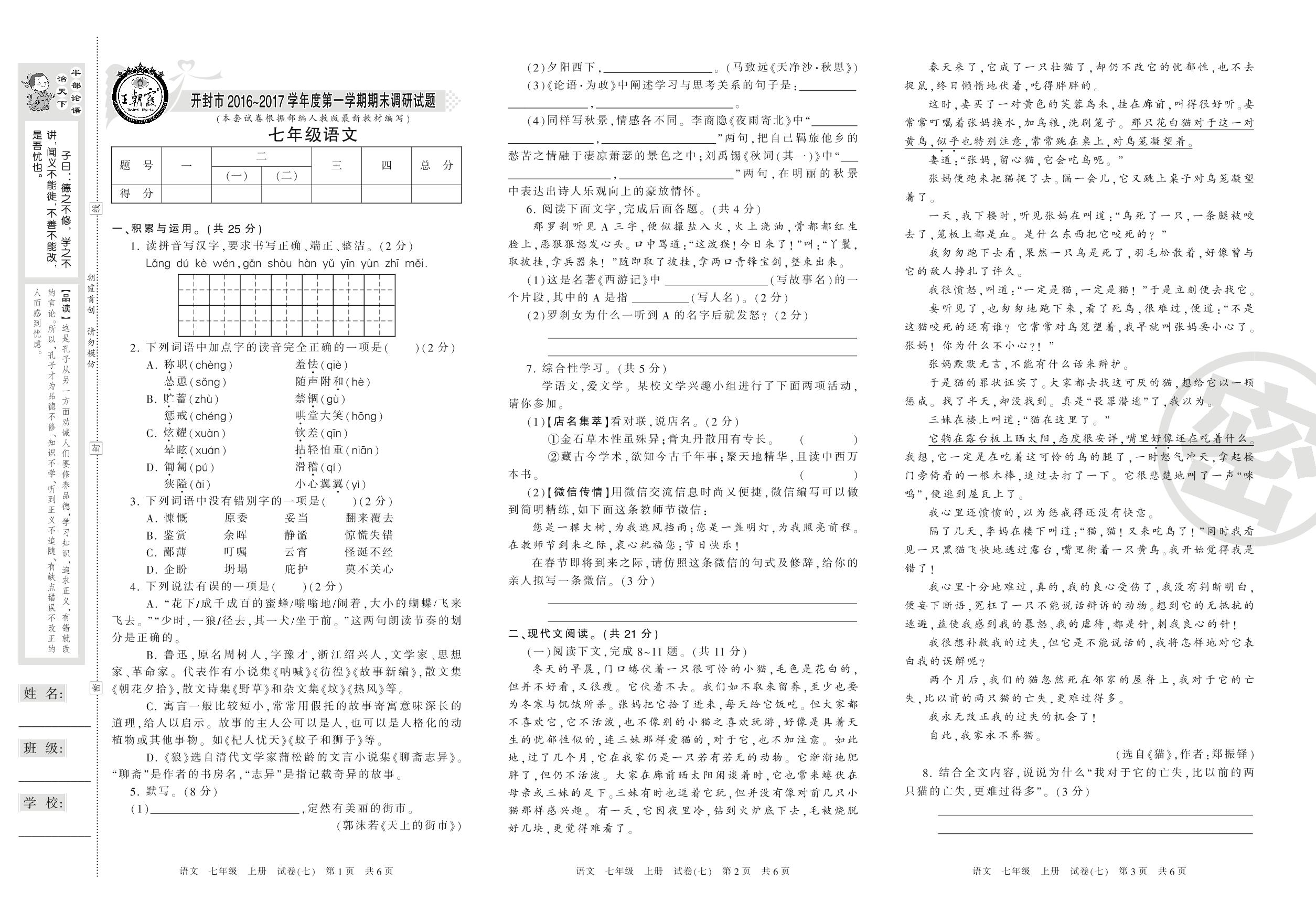 2016-2017学年第一学期开封市七年级语文试卷(人教版)_R210802151101【7】