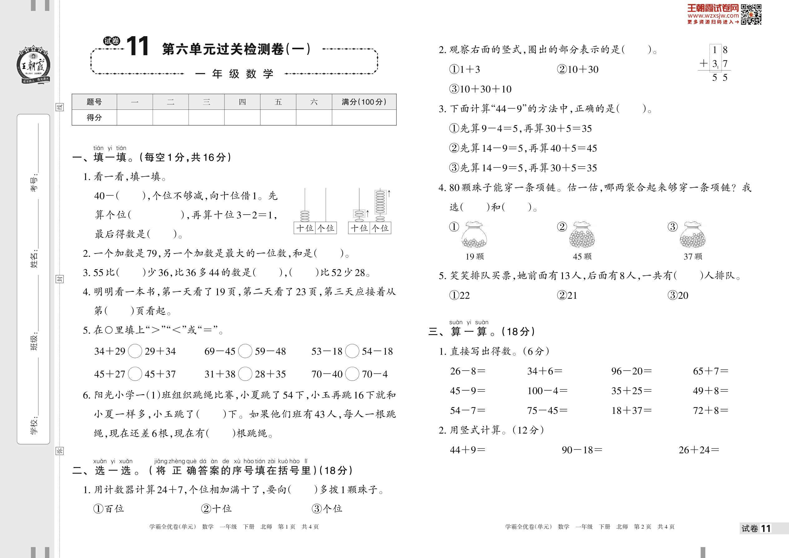 2023下册一年级数学北师版 试卷11 第六单元过关检测卷(一)