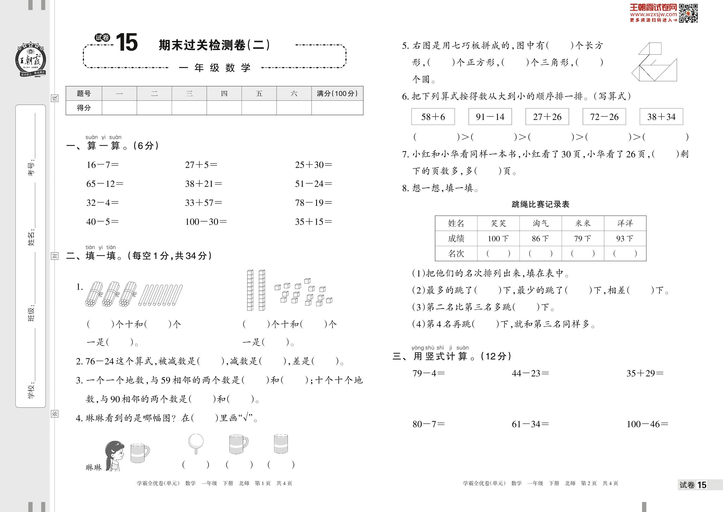2023下册一年级数学北师版 试卷15 期末过关检测卷(二)