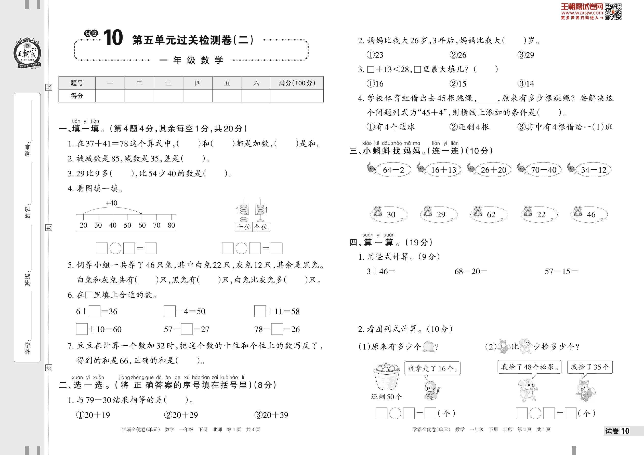 2023下册一年级数学北师版 试卷10 第五单元过关检测卷(二)