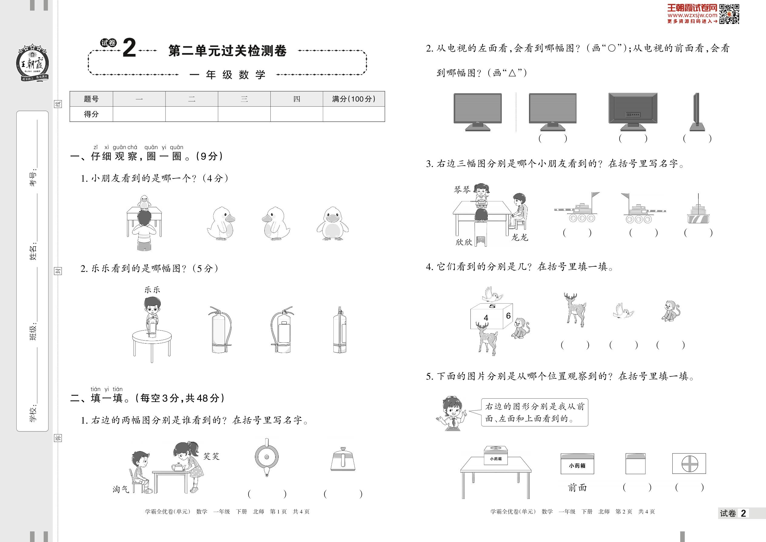 2023下册一年级数学北师版 试卷2 第二单元过关检测卷