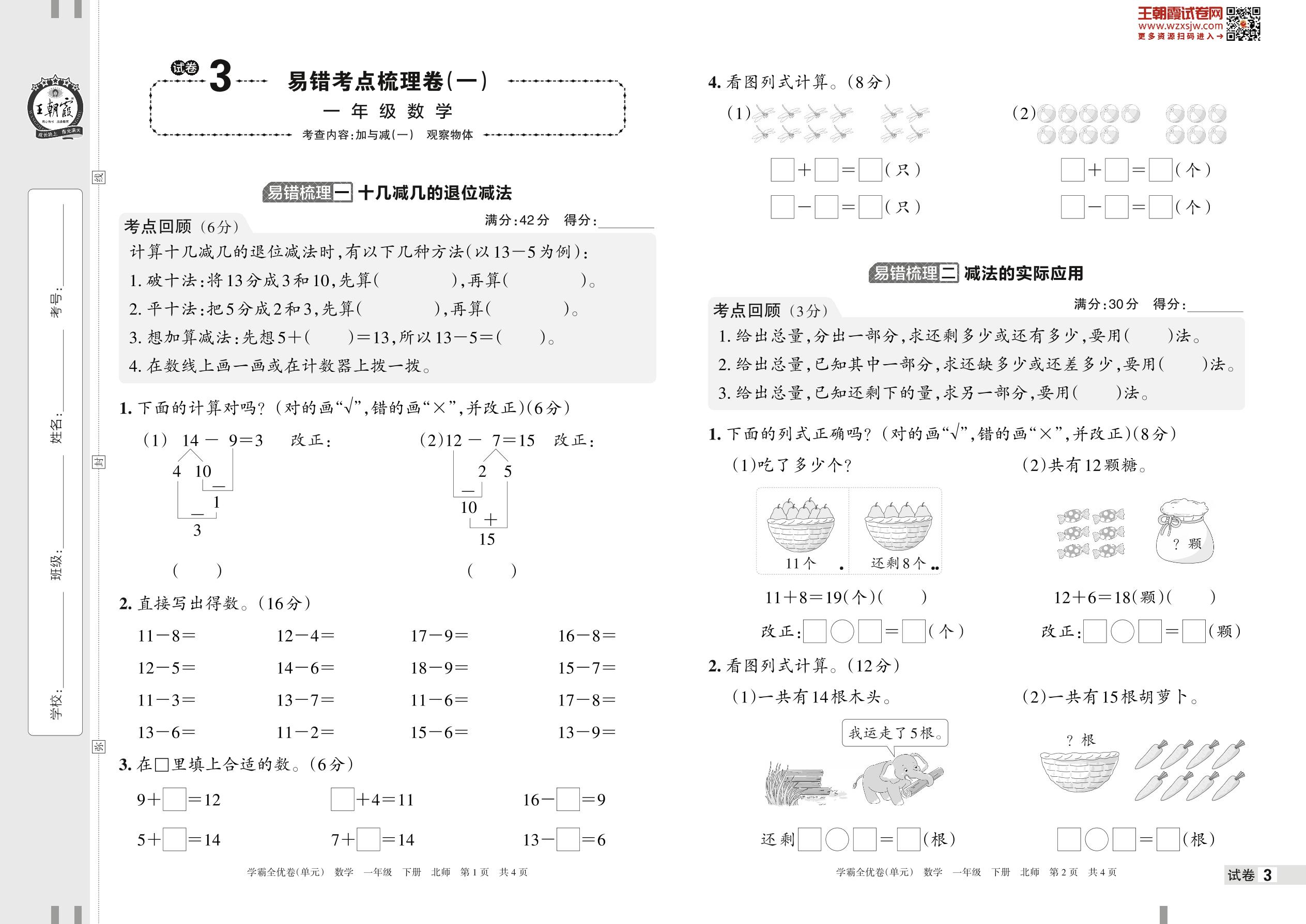 2023下册一年级数学北师版 试卷3 易错考点梳理卷(一)