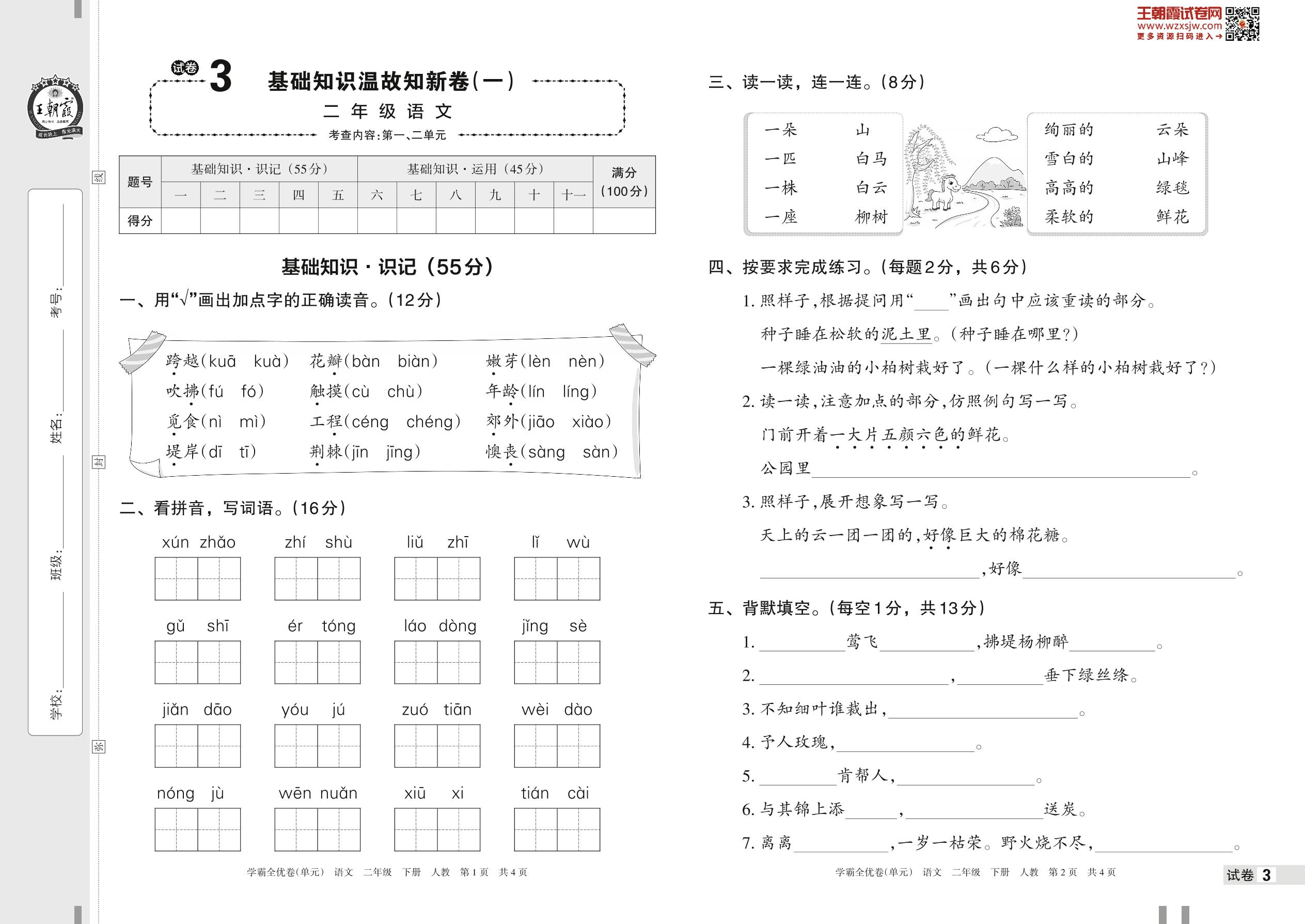 2023下册二年级语文人教版 试卷3 基础知识温故知新卷(一)