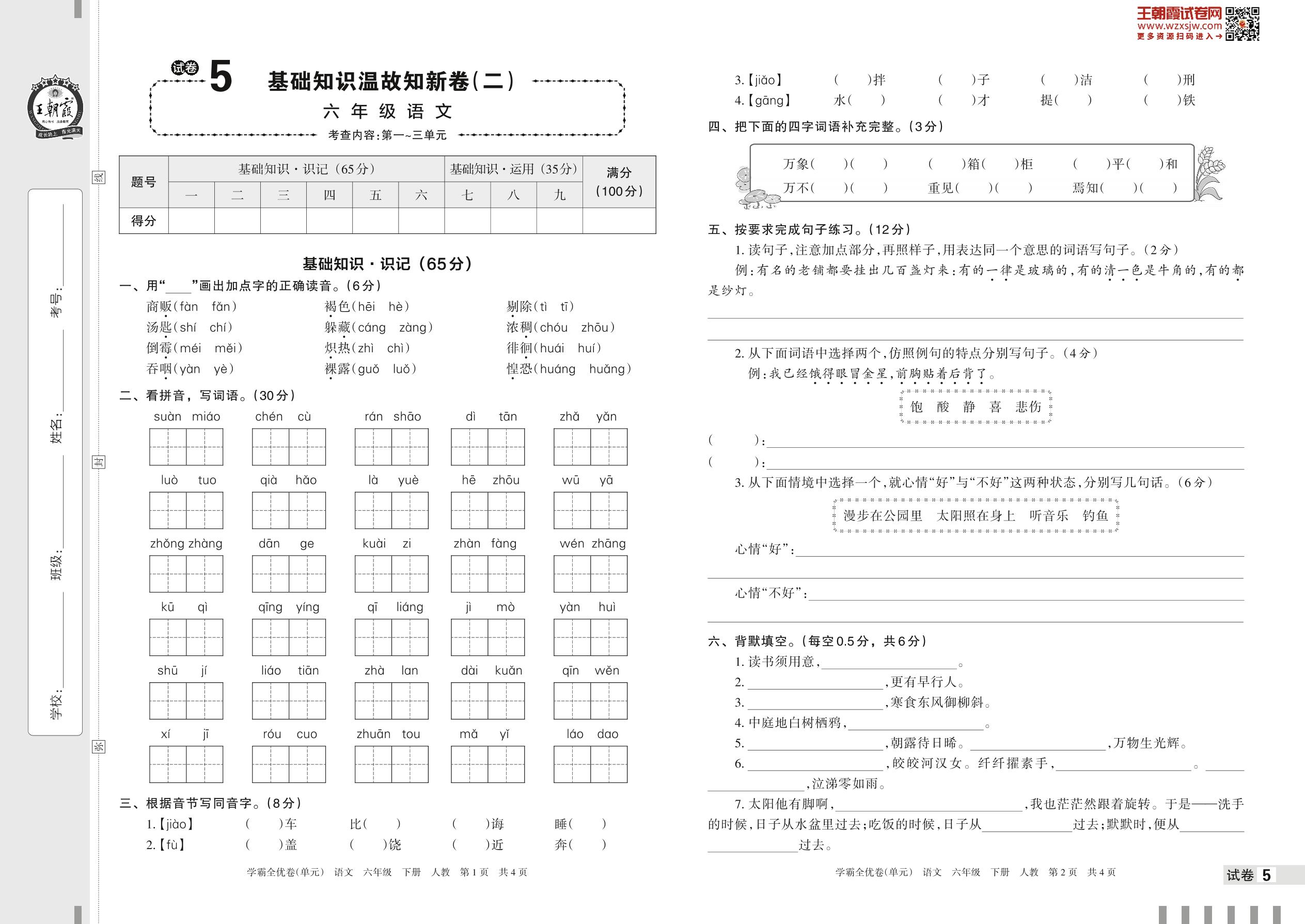 2023下册六年级语文人教版 试卷5 基础知识温故知新卷(二)