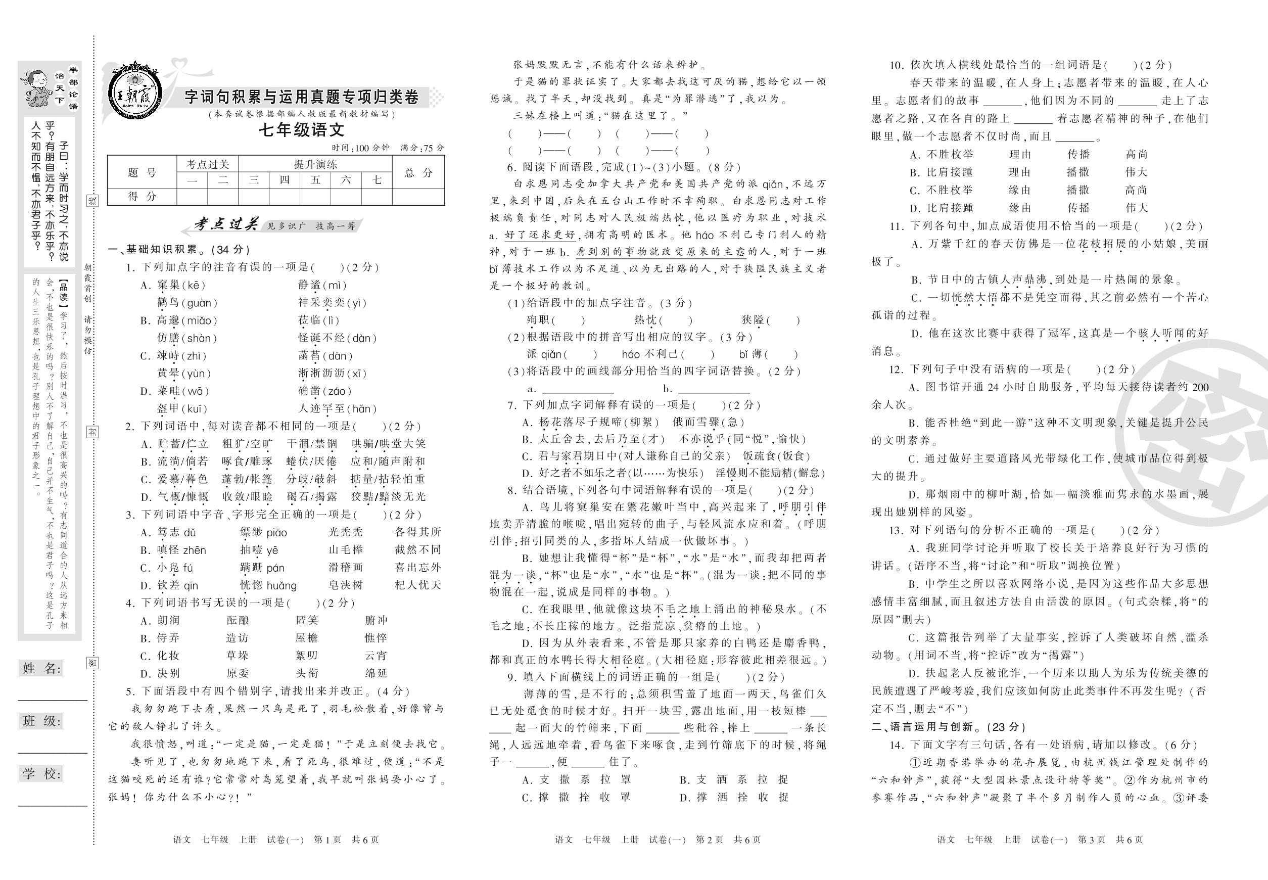 王朝霞期末专项卷七年级上册语文(人教版)_R210802151902【1】