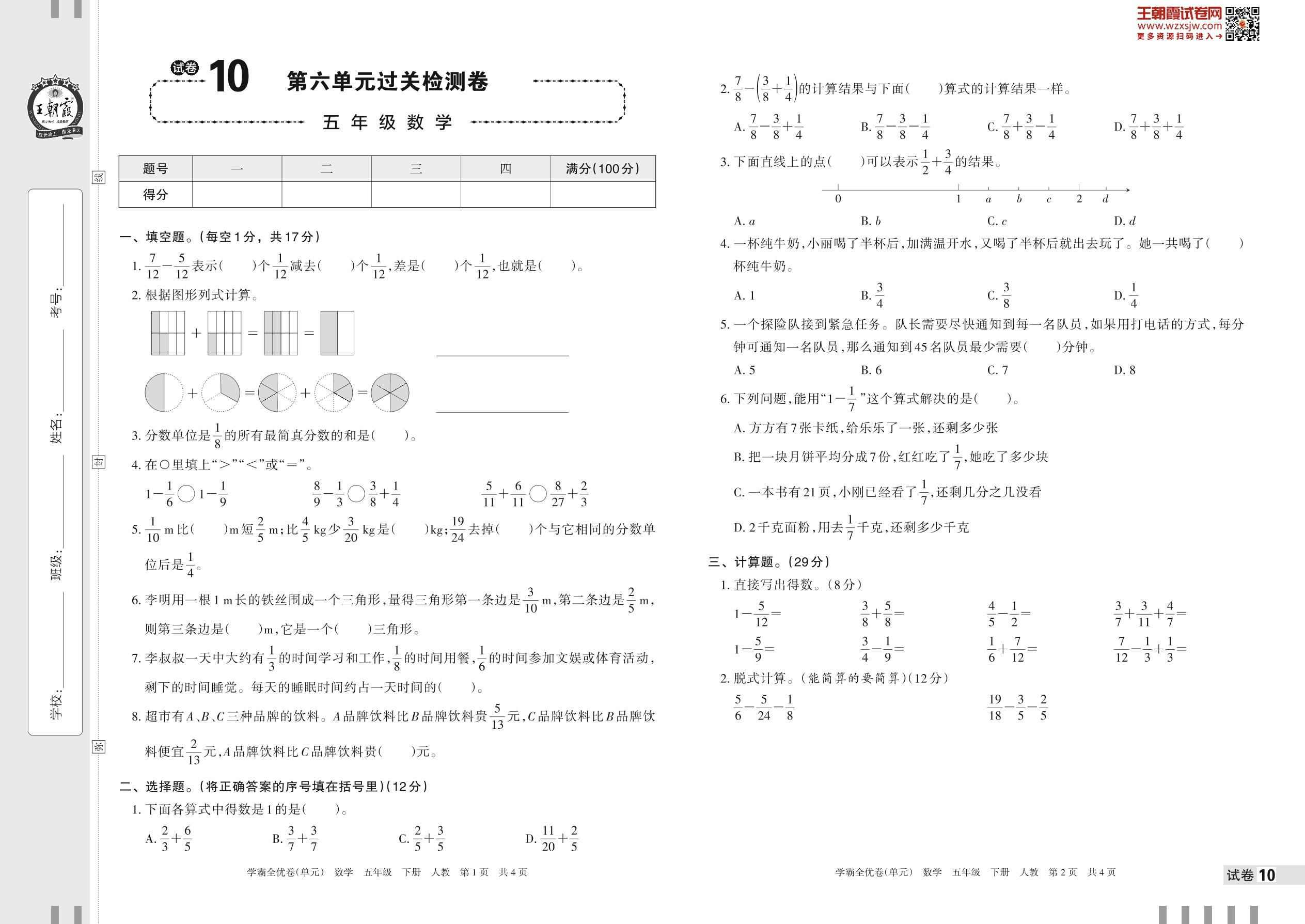 2023下册五年级数学人教版 试卷10 第六单元过关检测卷
