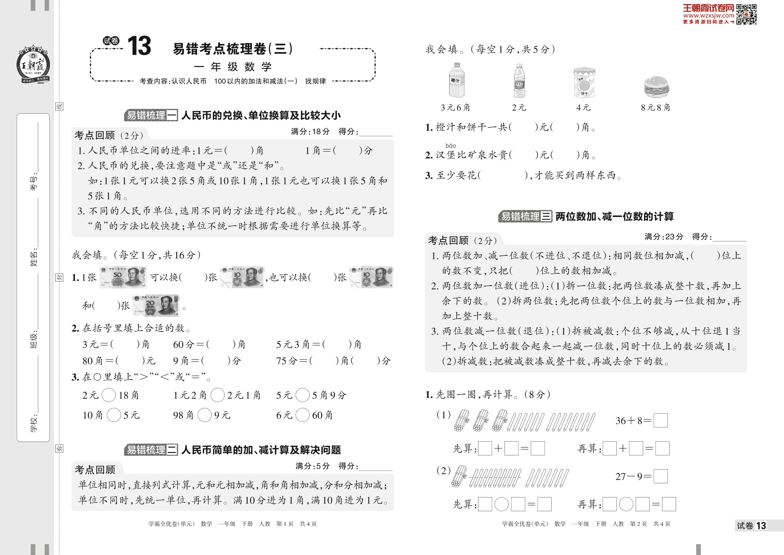 2023下册一年级数学人教版 试卷13 易错考点梳理卷(三)