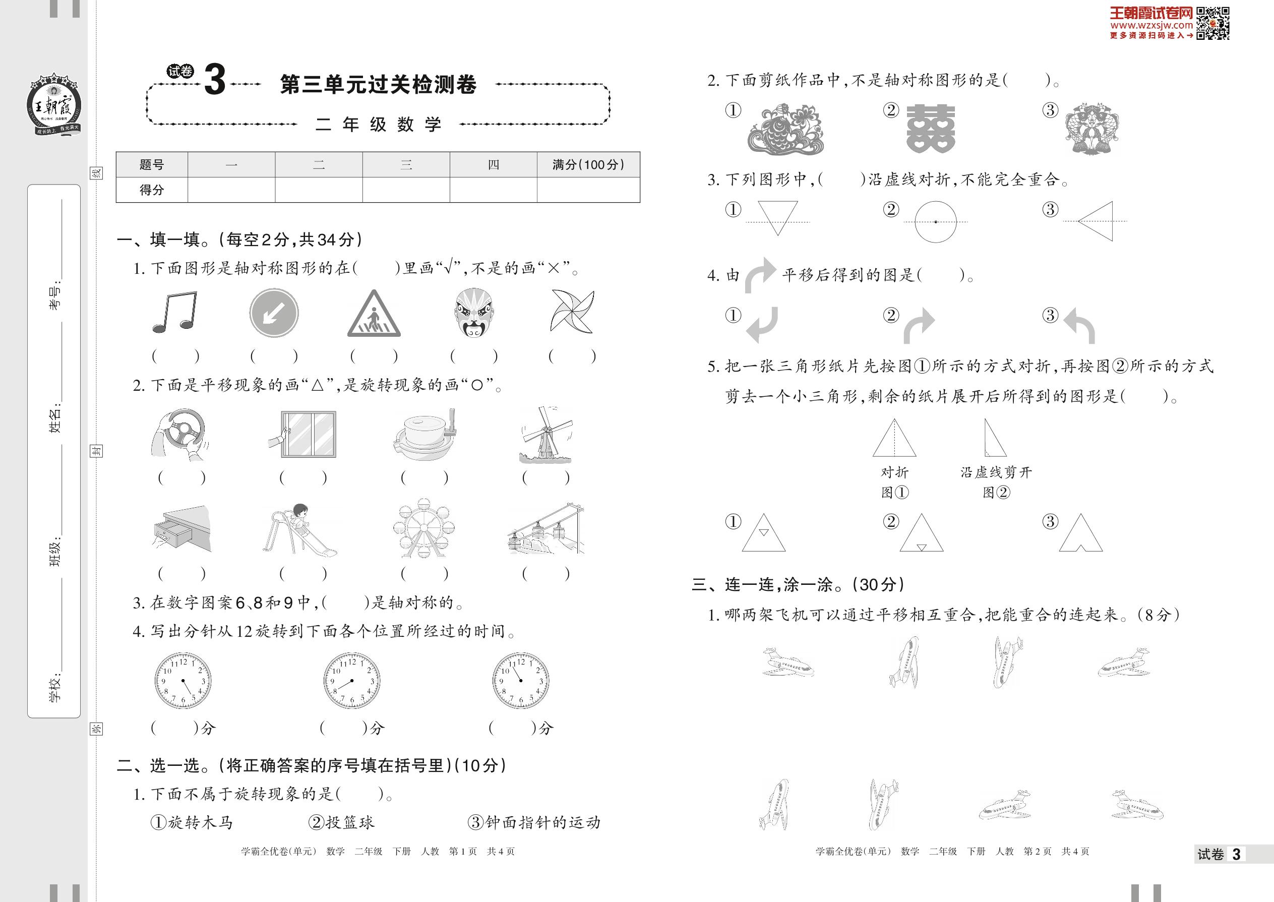 2023下册二年级数学人教版 试卷3 第三单元过关检测卷