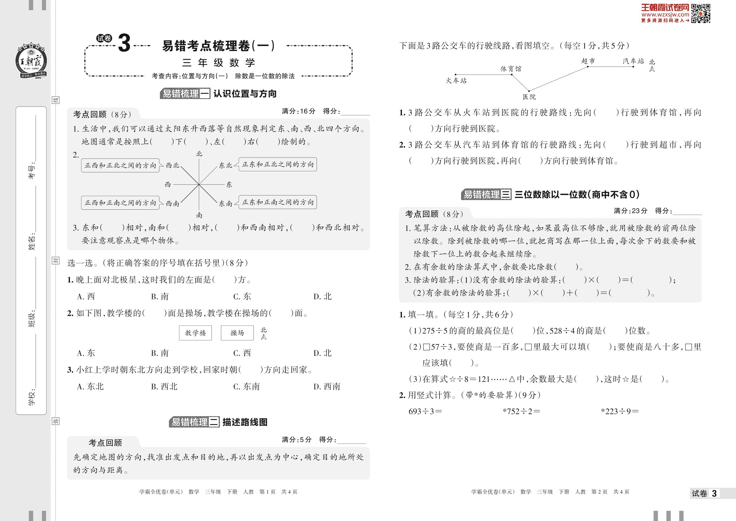 2023下册三年级数学人教版 试卷3 易错考点梳理卷(一)