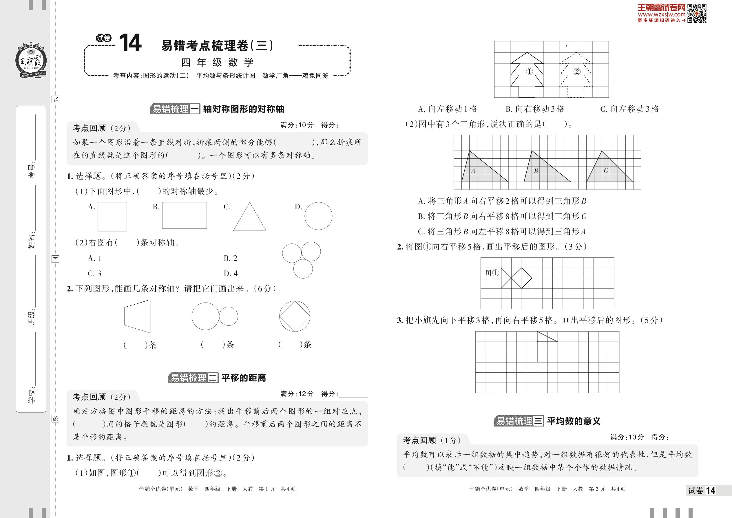 2023下册四年级数学人教版 试卷14 易错考点梳理卷(三)