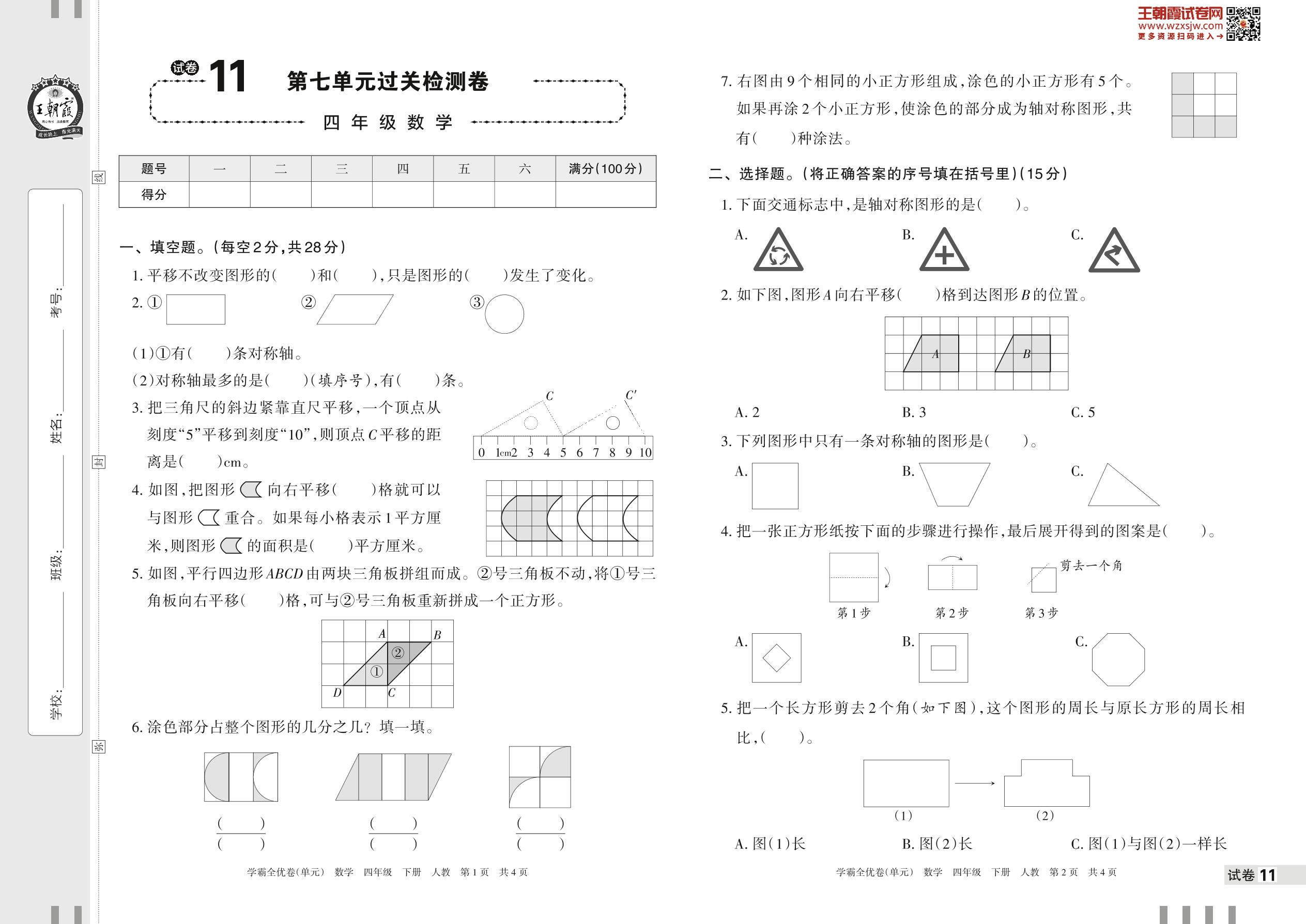 2023下册四年级数学人教版 试卷11 第七单元过关检测卷