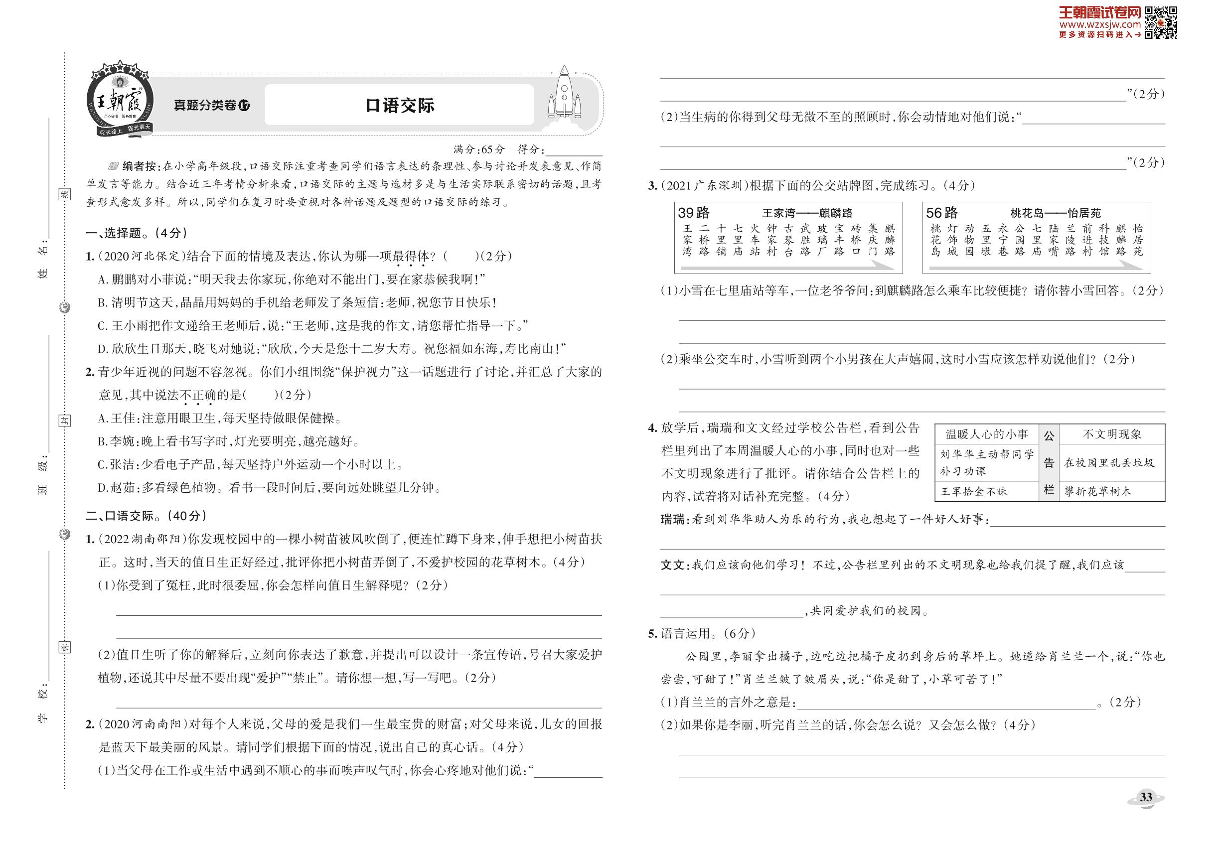 小升初语文真题分类·王朝霞精编卷——口语交际_R221225101158149【17】