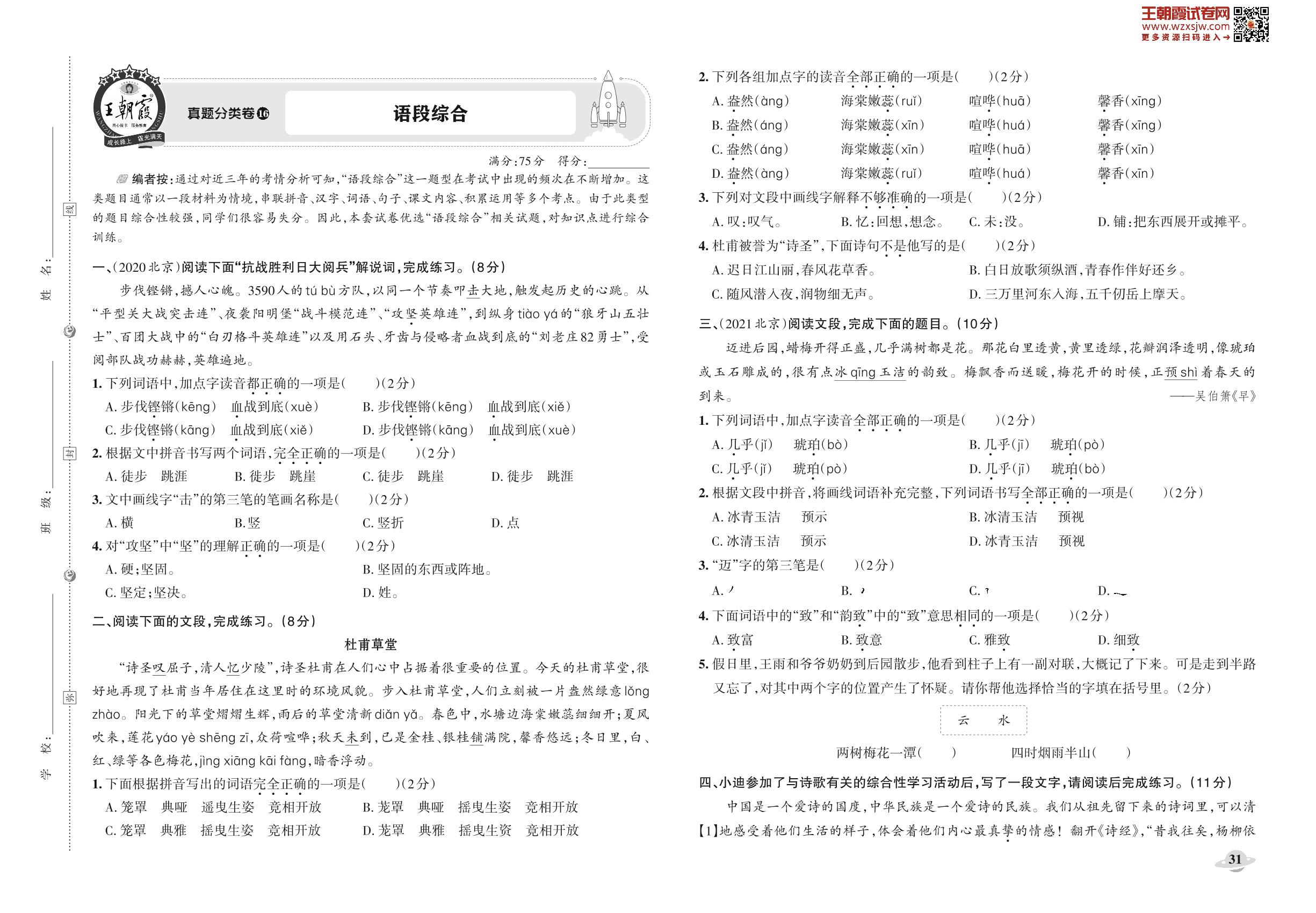 小升初语文真题分类·王朝霞精编卷——语段综合【16】
