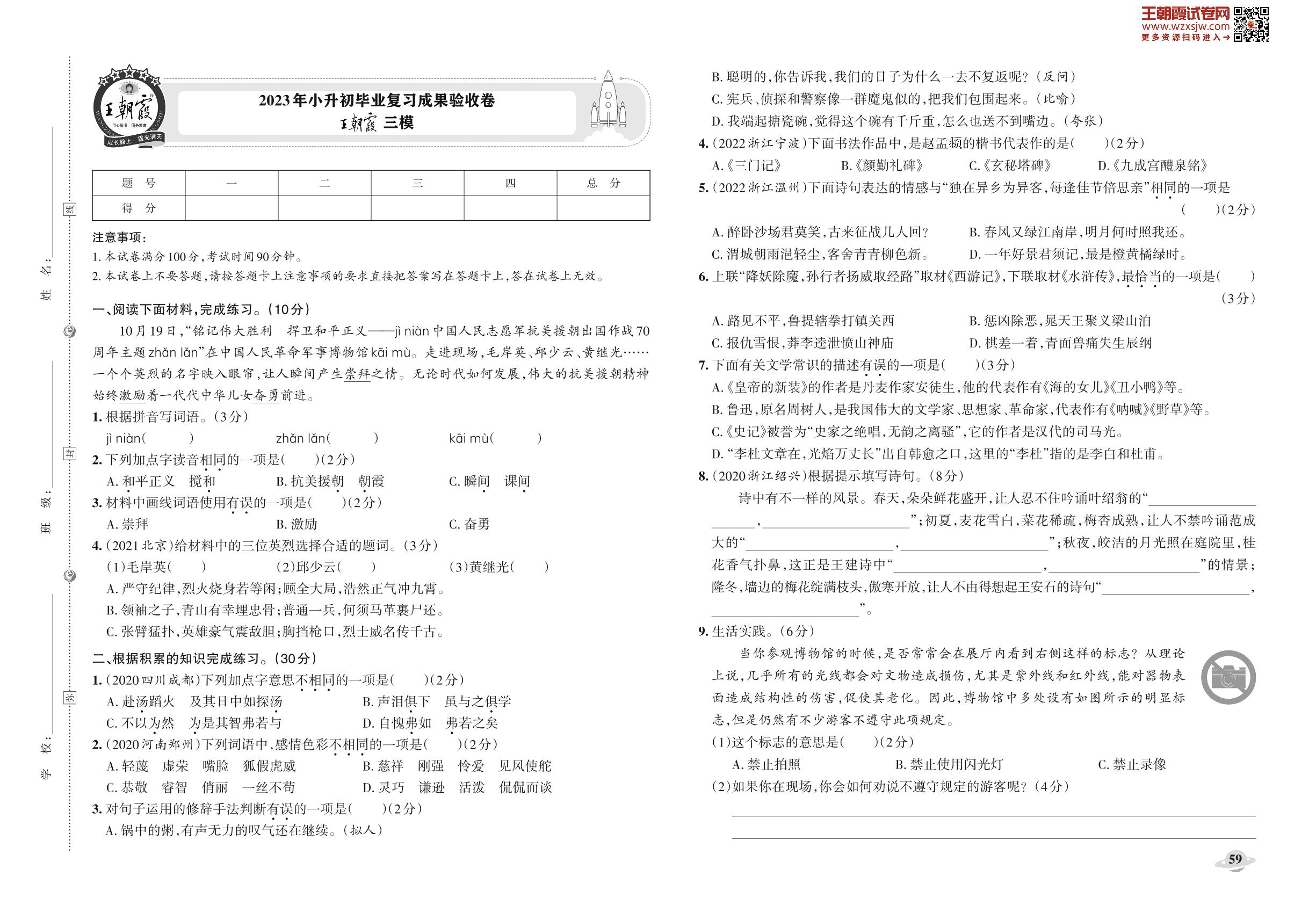 小升初语文分类集训成果验收卷·王朝霞模拟卷_R221225101204313【3】