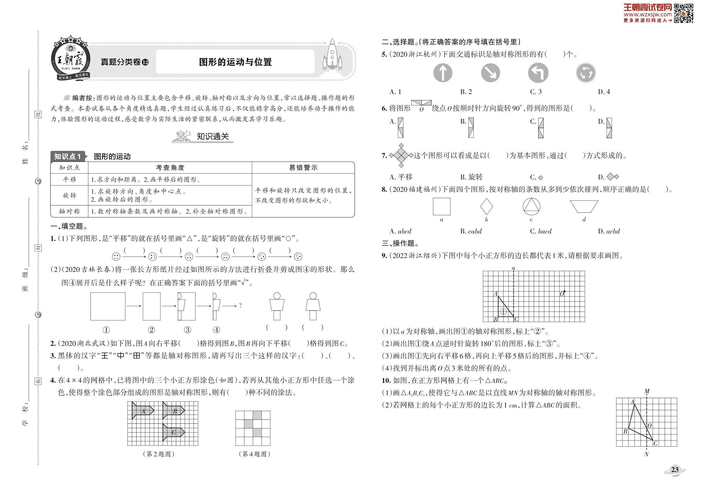 小升初数学真题分类·王朝霞精编卷——图形的运动与位置_R221225102109569【12】