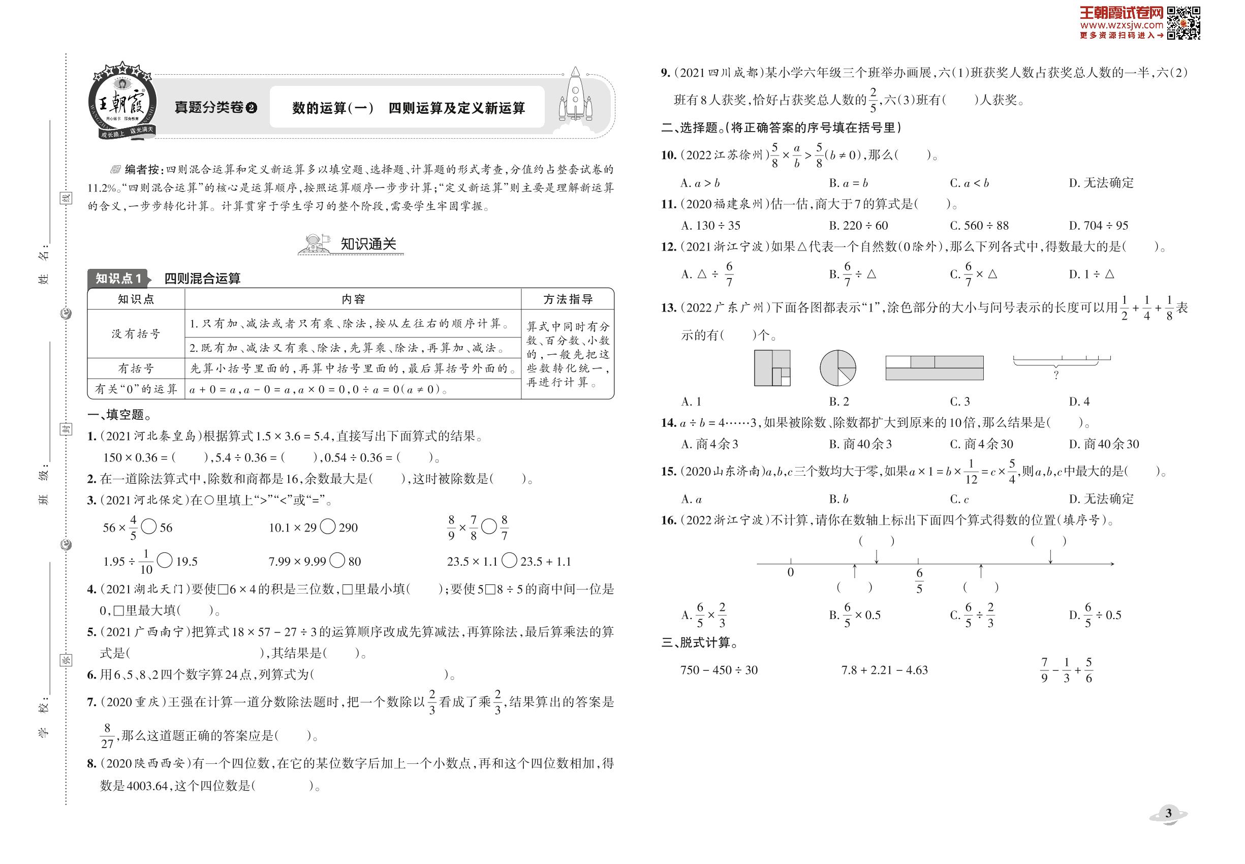 小升初数学真题分类·王朝霞精编卷——数的运算(一)四则混合运算及定义新运算【2】