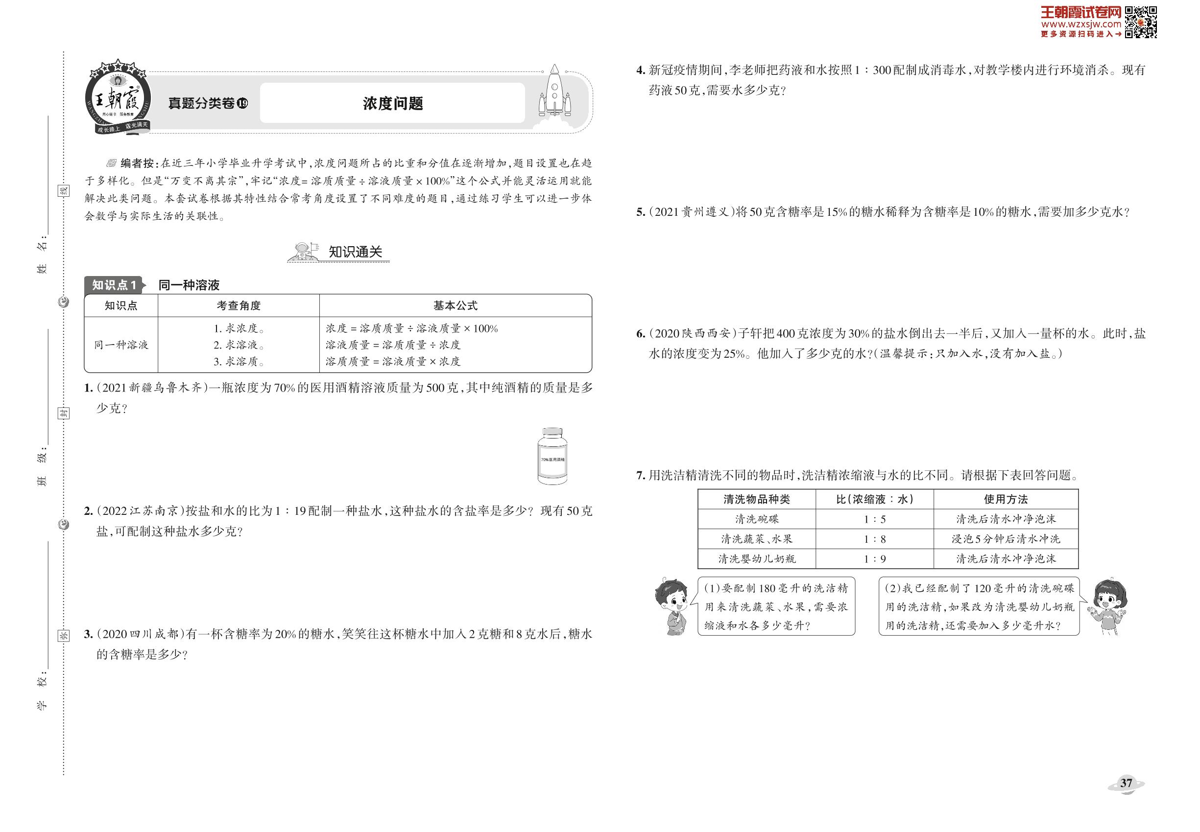 小升初数学真题分类·王朝霞精编卷——浓度问题_R221225102111203【19】