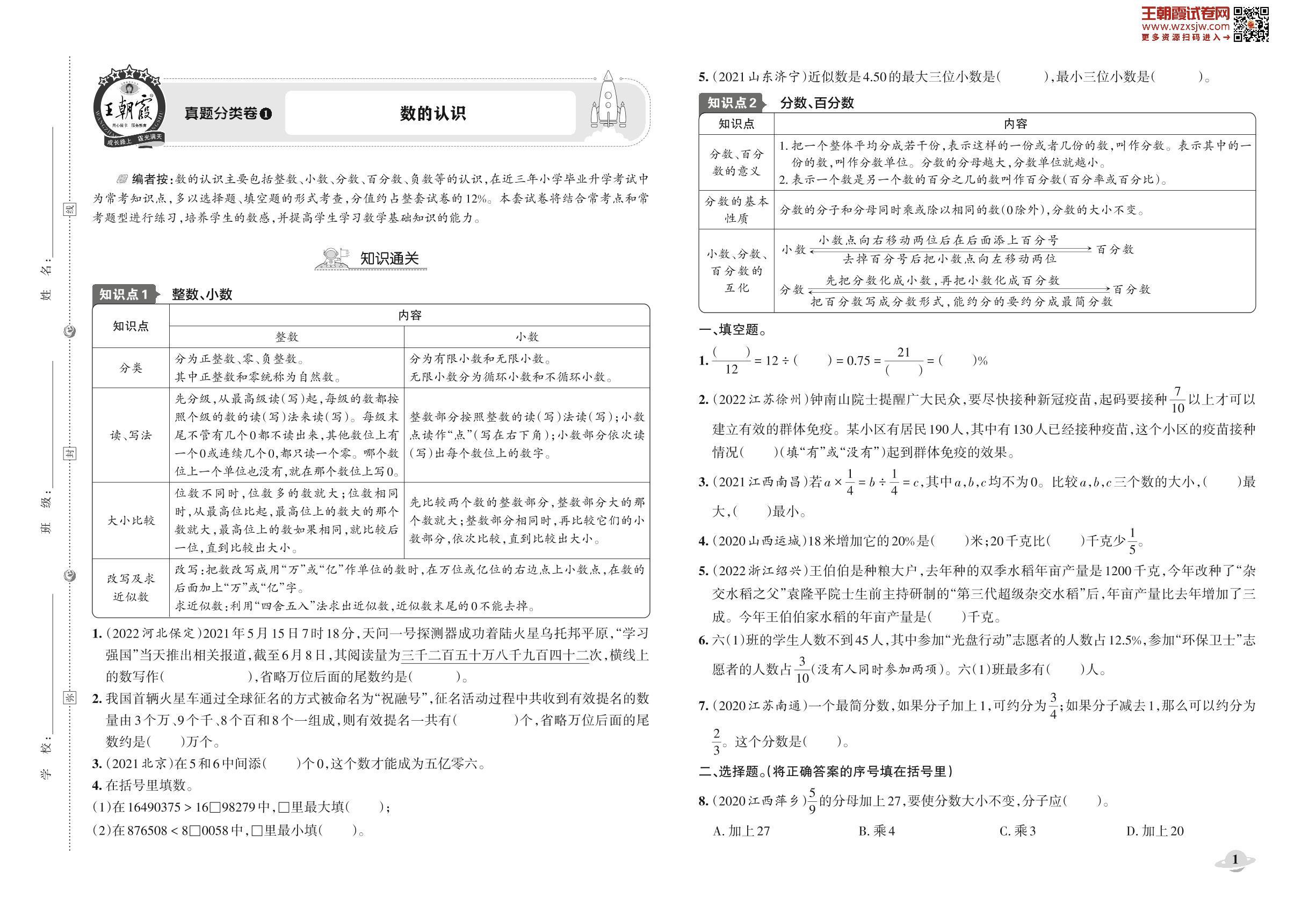 小升初数学真题分类·王朝霞精编卷——数的认识_R221225102111122【1】