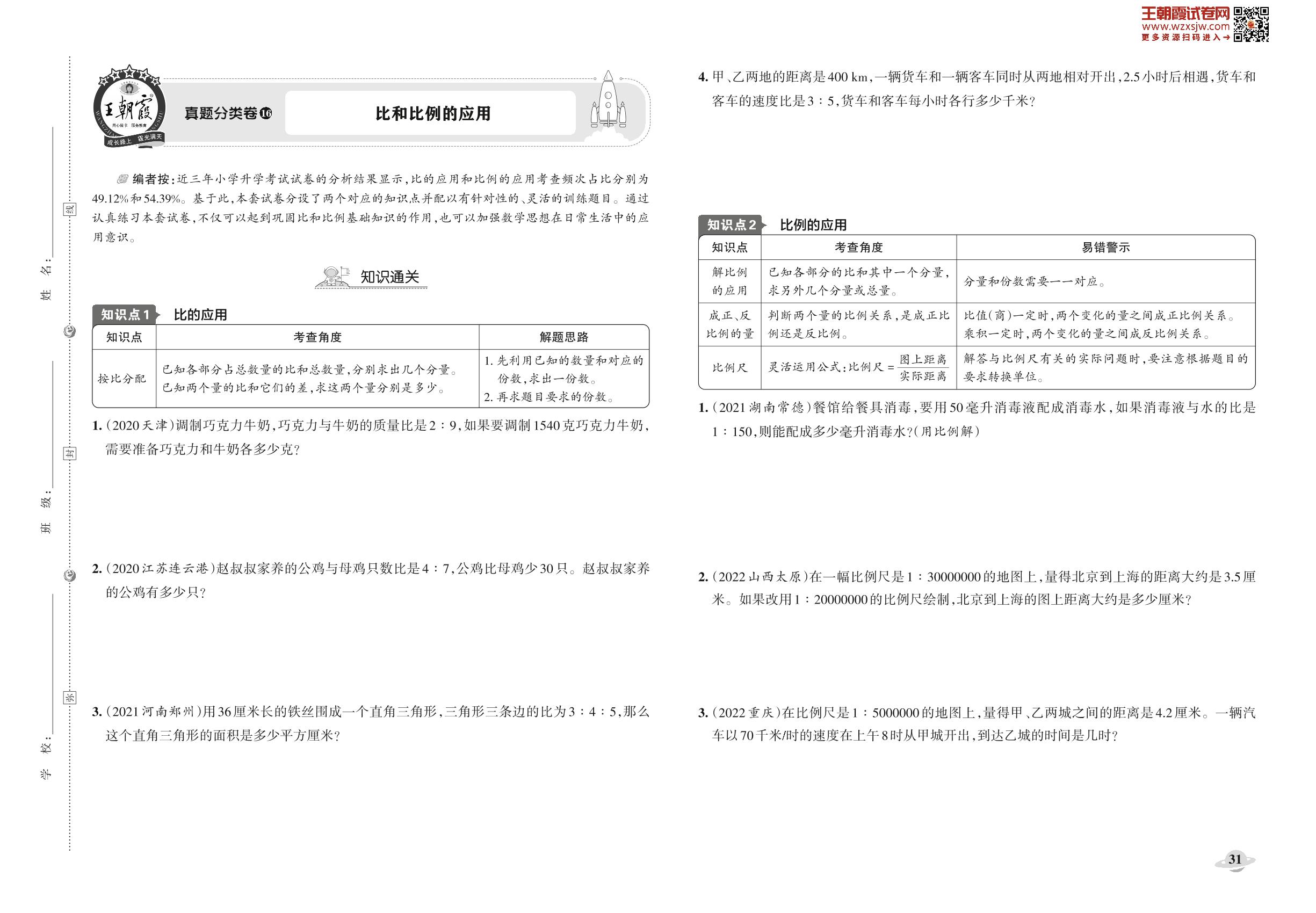 小升初数学真题分类·王朝霞精编卷——比和比例的应用_R221225102113746【16】