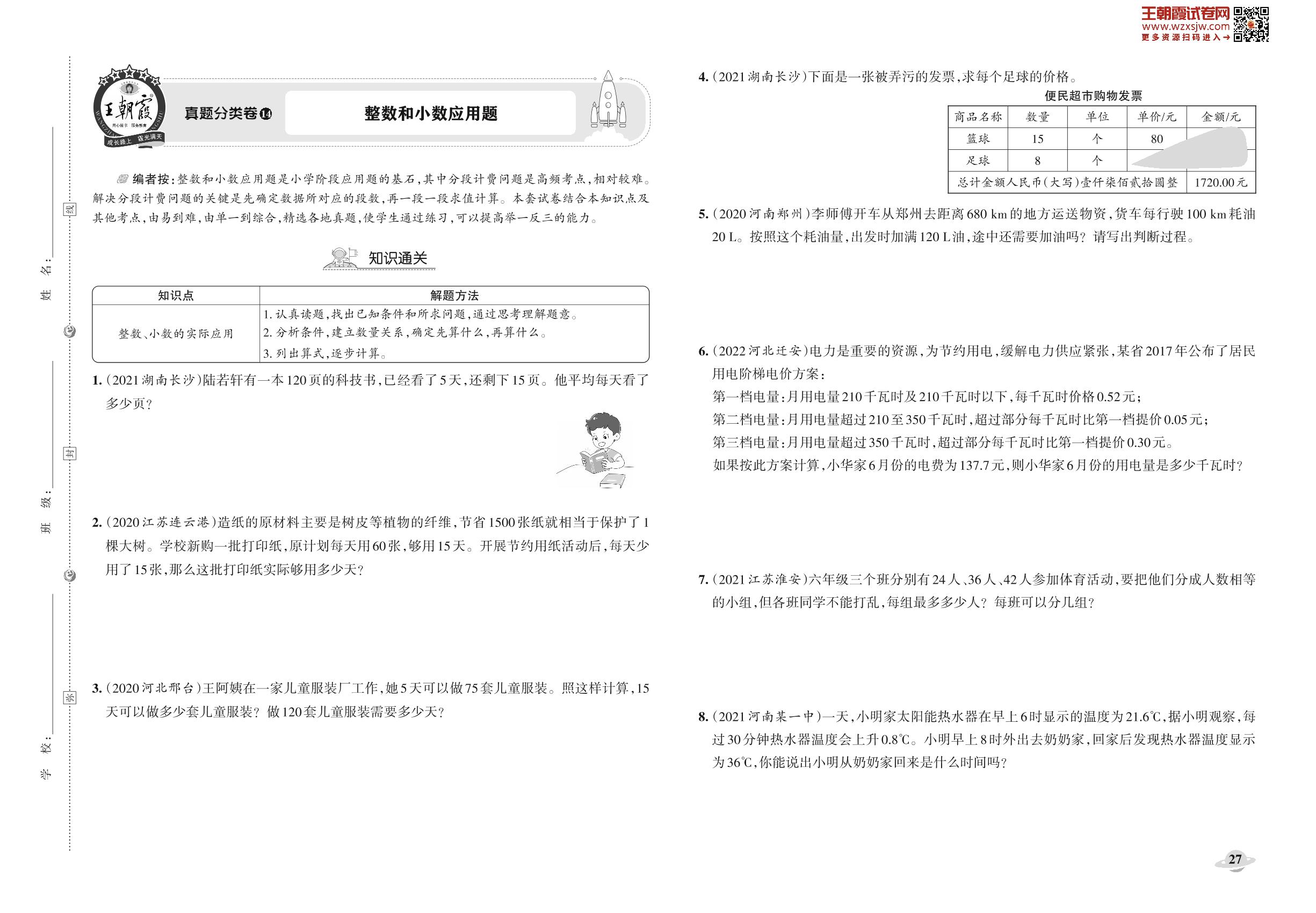 小升初数学真题分类·王朝霞精编卷——整数和小数应用题_R221225102114182【14】