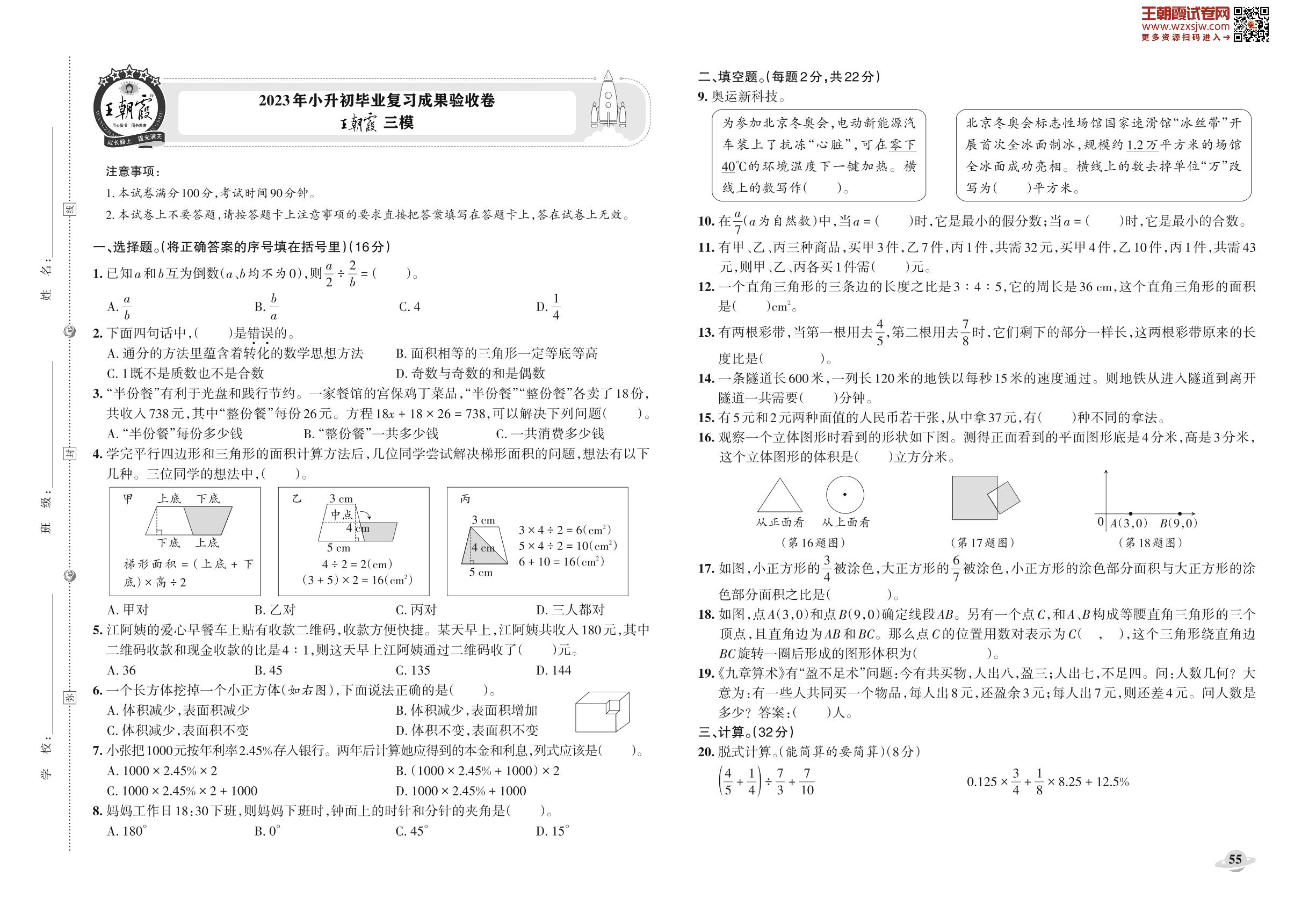 小升初数学分类集训成果验收卷·王朝霞模拟卷_R221225102114904【3】