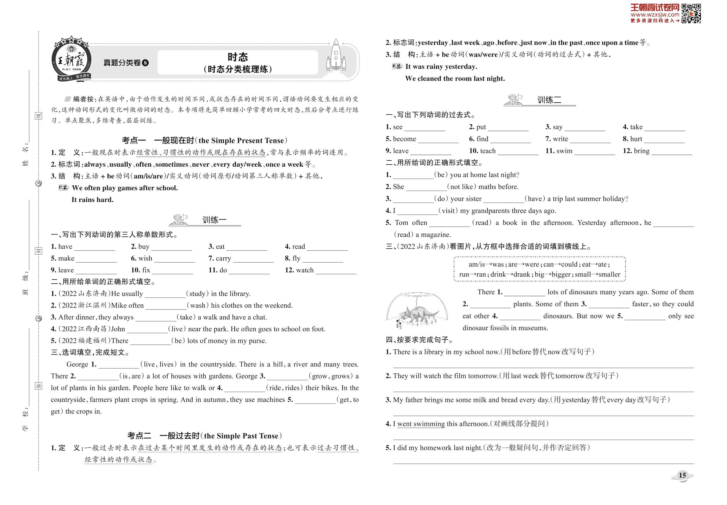 小升初英语真题分类·王朝霞精编卷——时态(时态分类梳理练)【8】