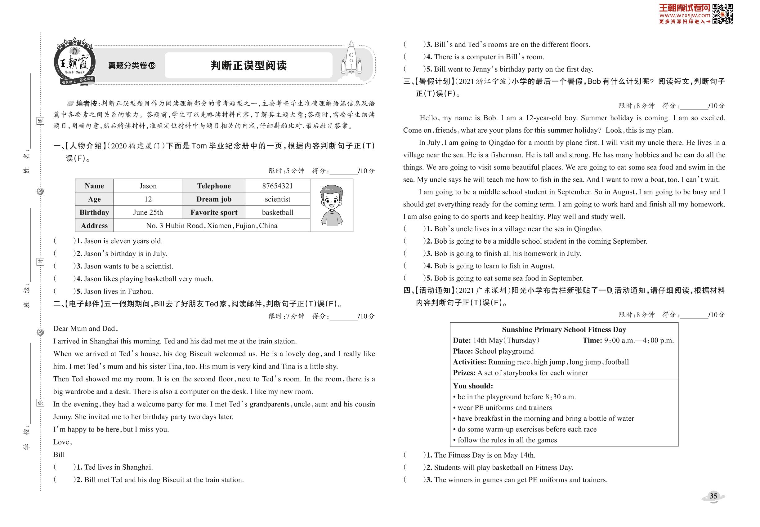 小升初英语真题分类·王朝霞精编卷——判断正误型阅读_R221225103006190【18】