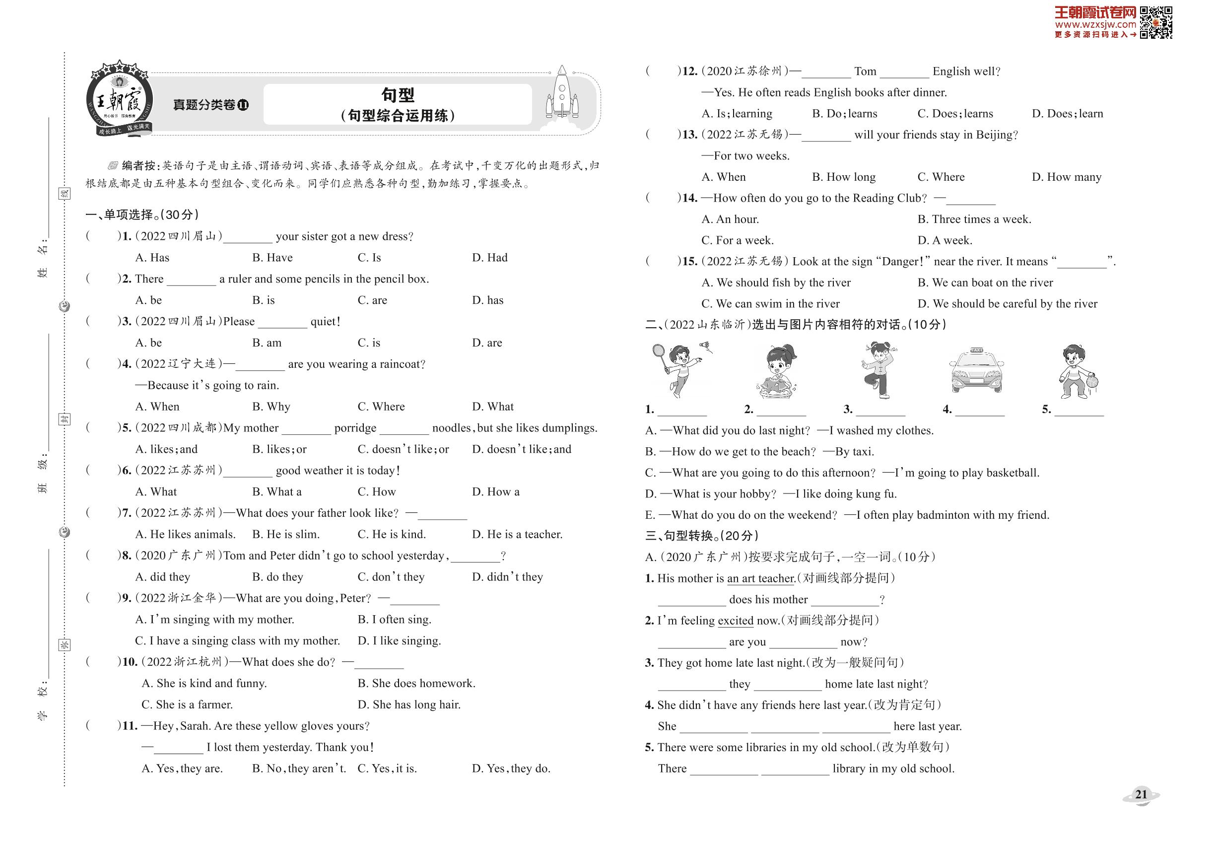 小升初英语真题分类·王朝霞精编卷——句型(句型综合运用练)【11】