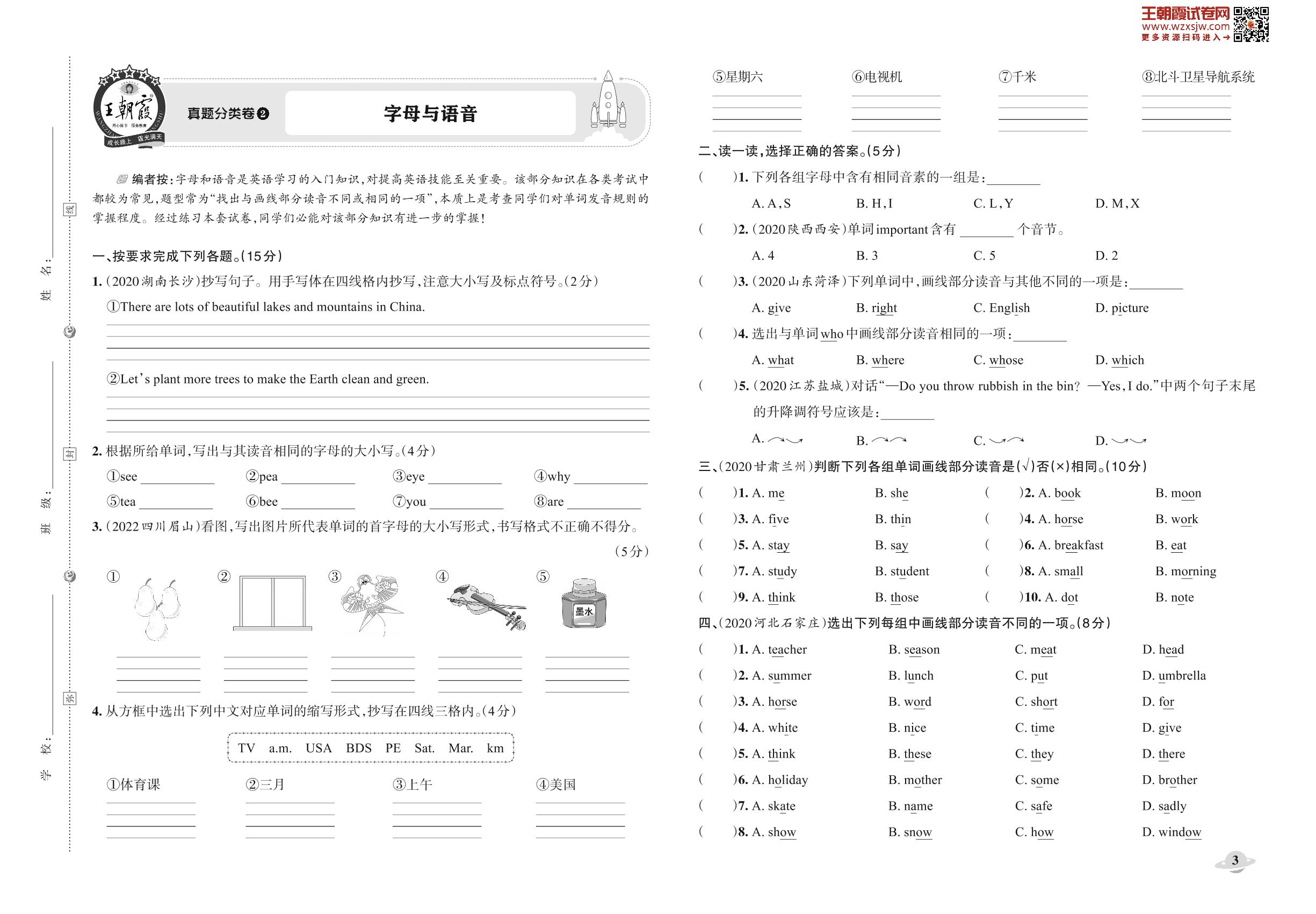 小升初英语真题分类·王朝霞精编卷——字母与语音_R221225103007723【2】