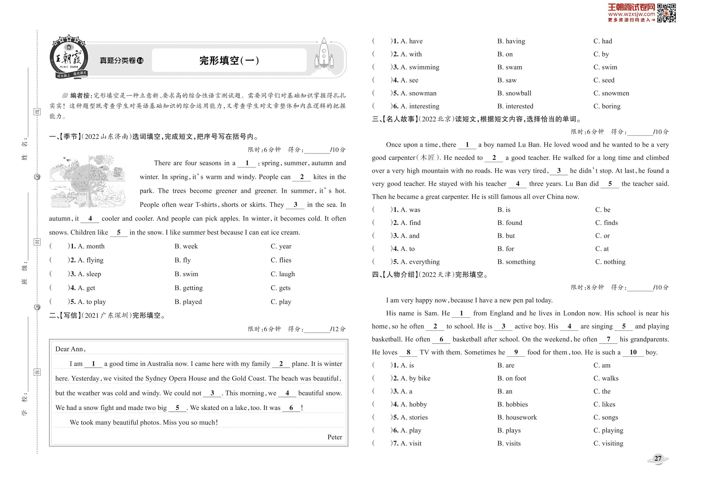 小升初英语真题分类·王朝霞精编卷——完形填空(一)_R221225103008874【14】