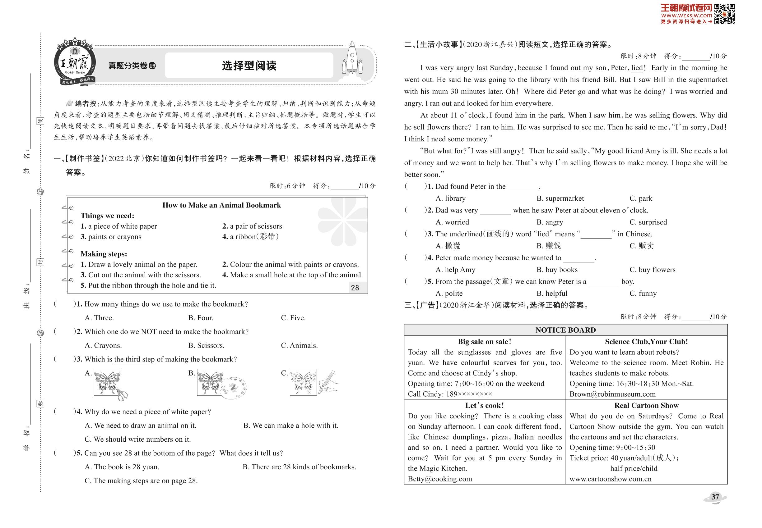 小升初英语真题分类·王朝霞精编卷——选择型阅读_R221225103008367【19】