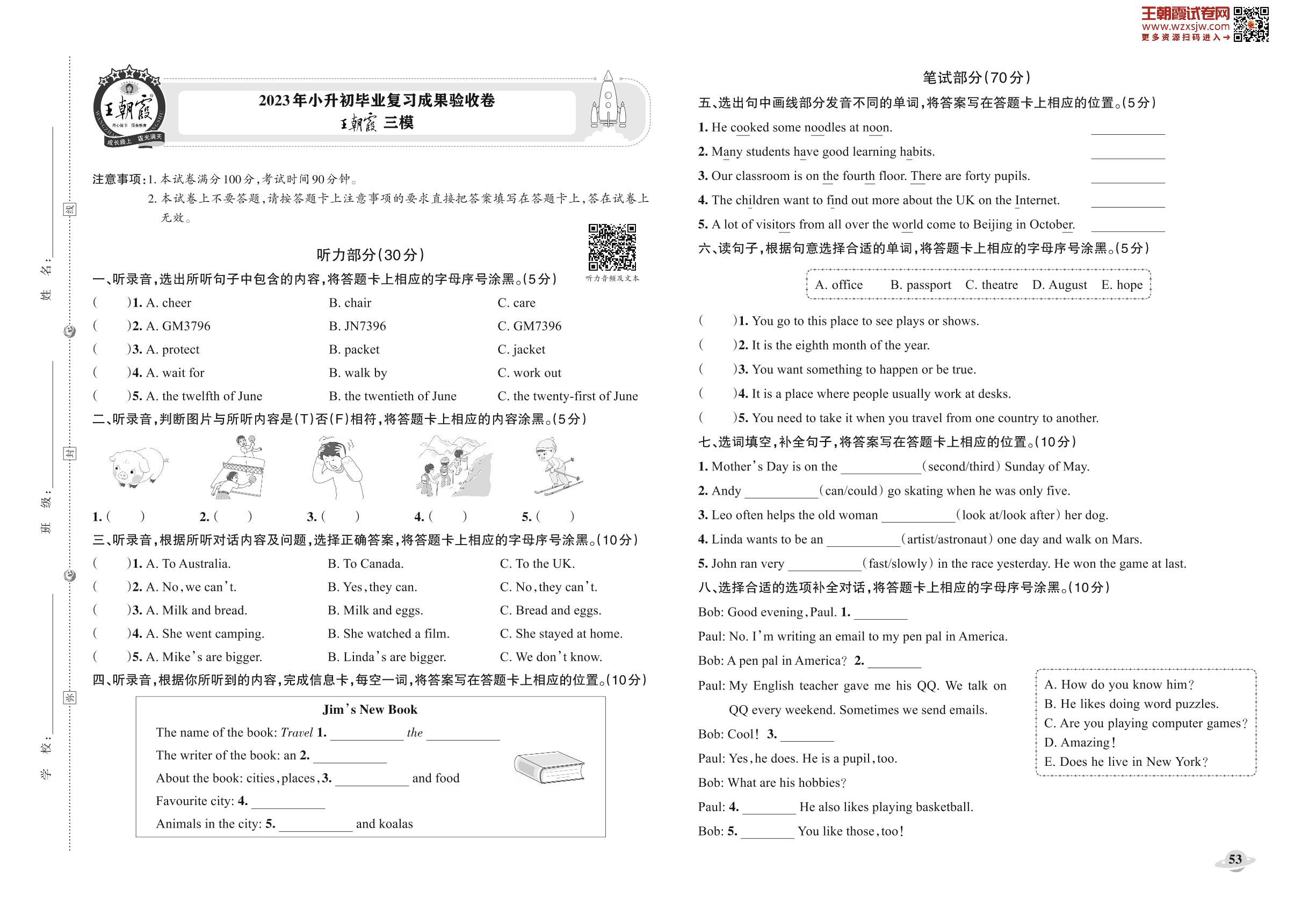 小升初英语分类集训成果验收卷·王朝霞模拟卷_R221225103008628【3】