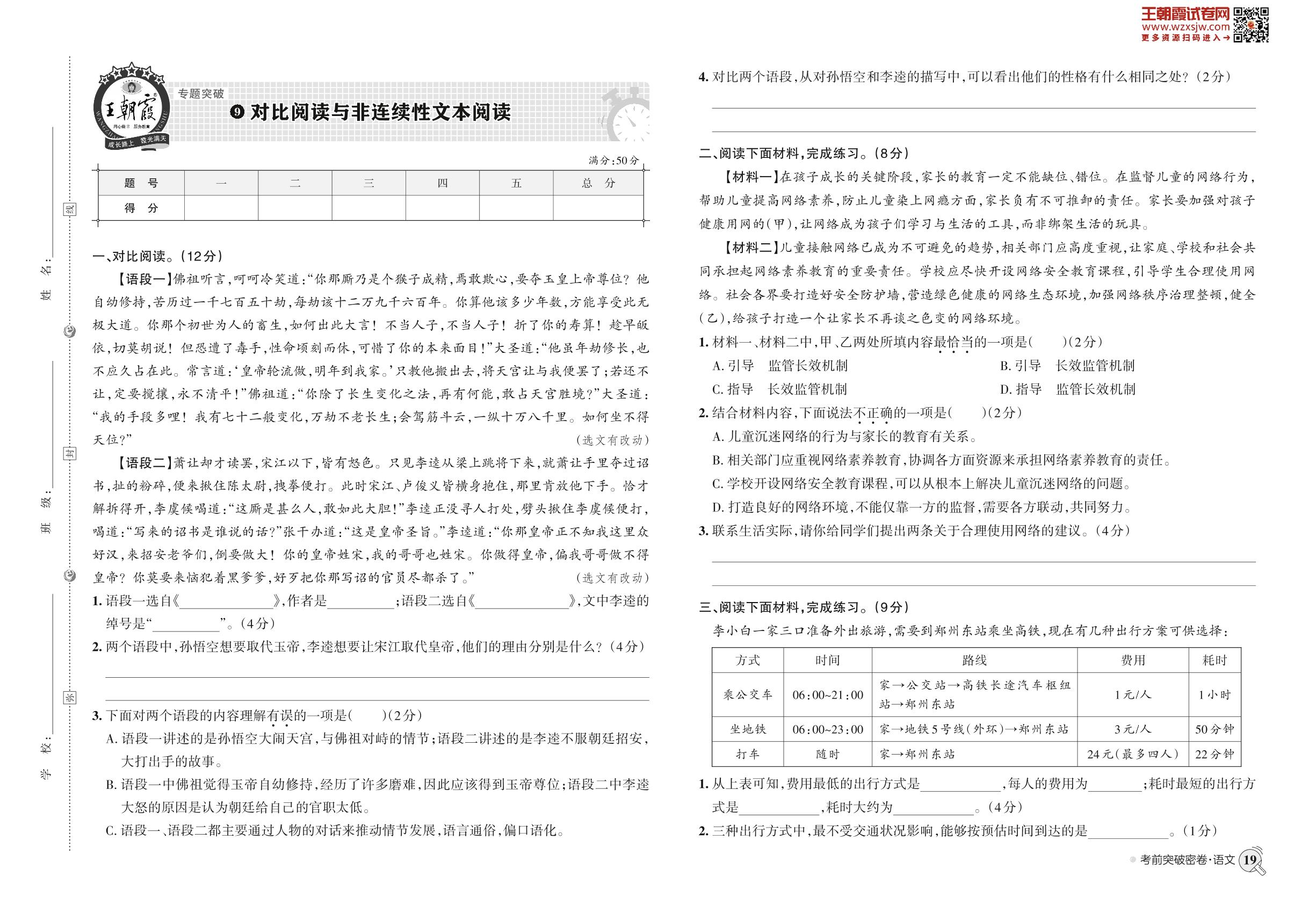 小升初语文·王朝霞专题突破——对比阅读与非连续性文本阅读【9】