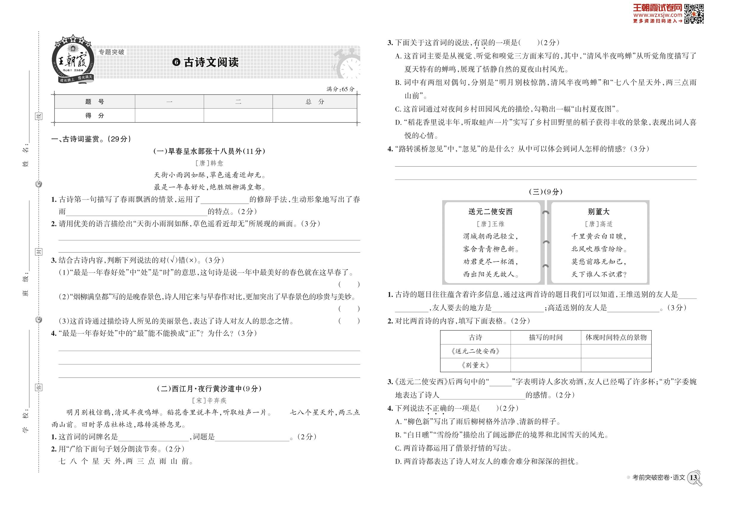 小升初语文·王朝霞专题突破——古诗文阅读【6】