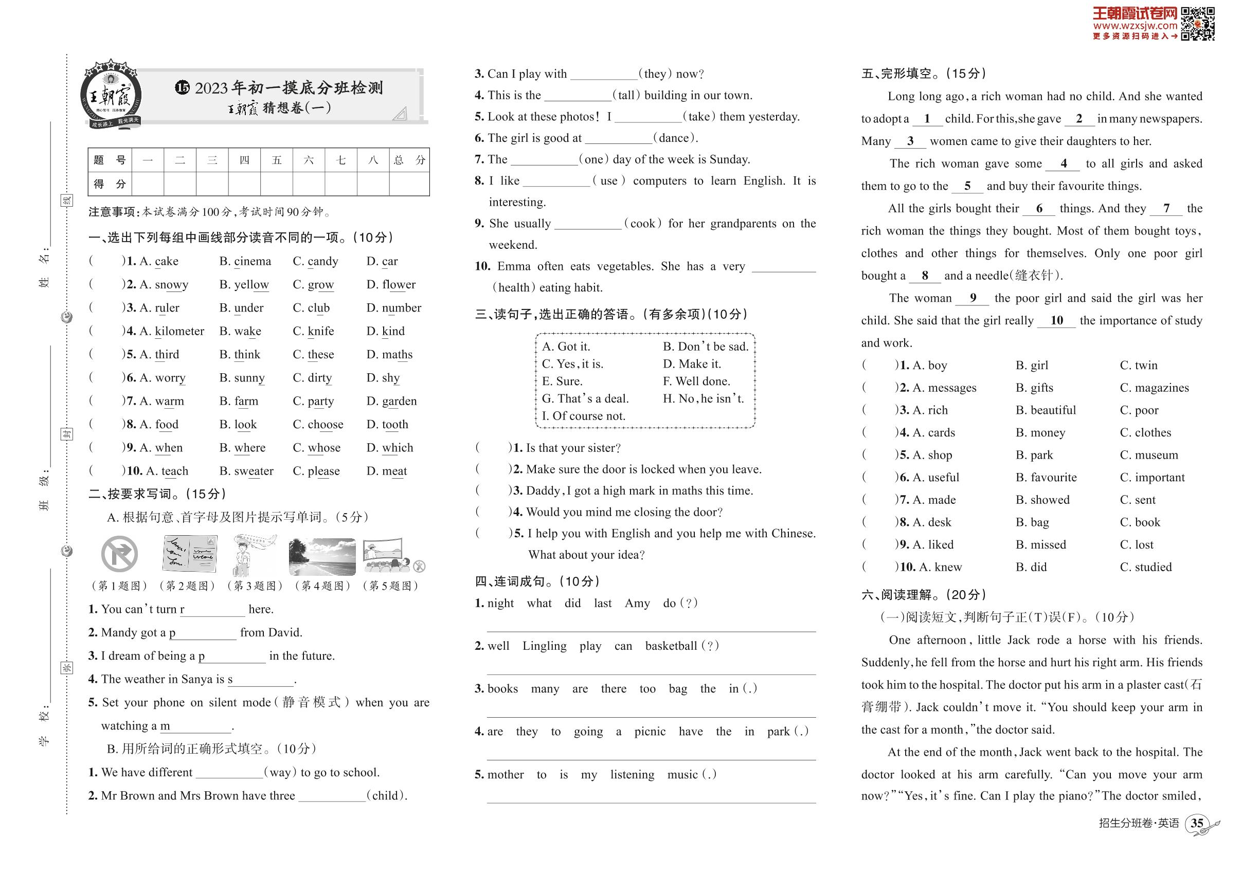 小升初英语初一摸底分班检测王朝霞猜想卷(一)_R221226091716196【15】