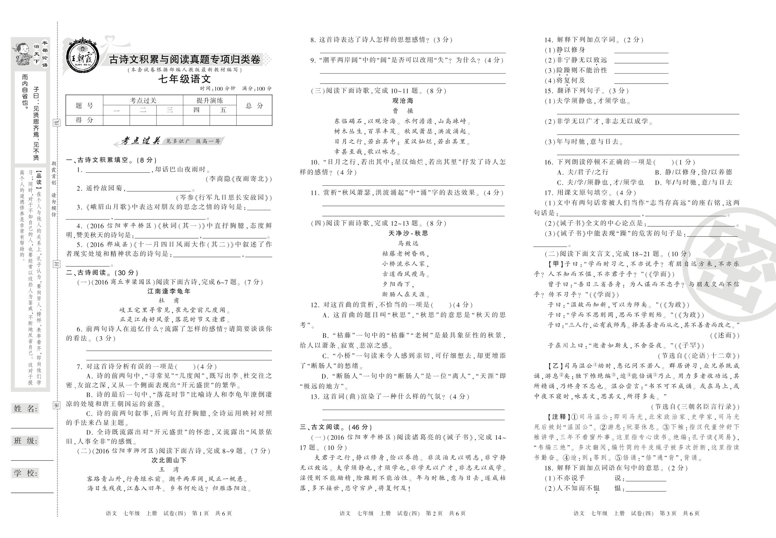 王朝霞期末专项卷七年级上册语文(人教版)_R210802153646【4】
