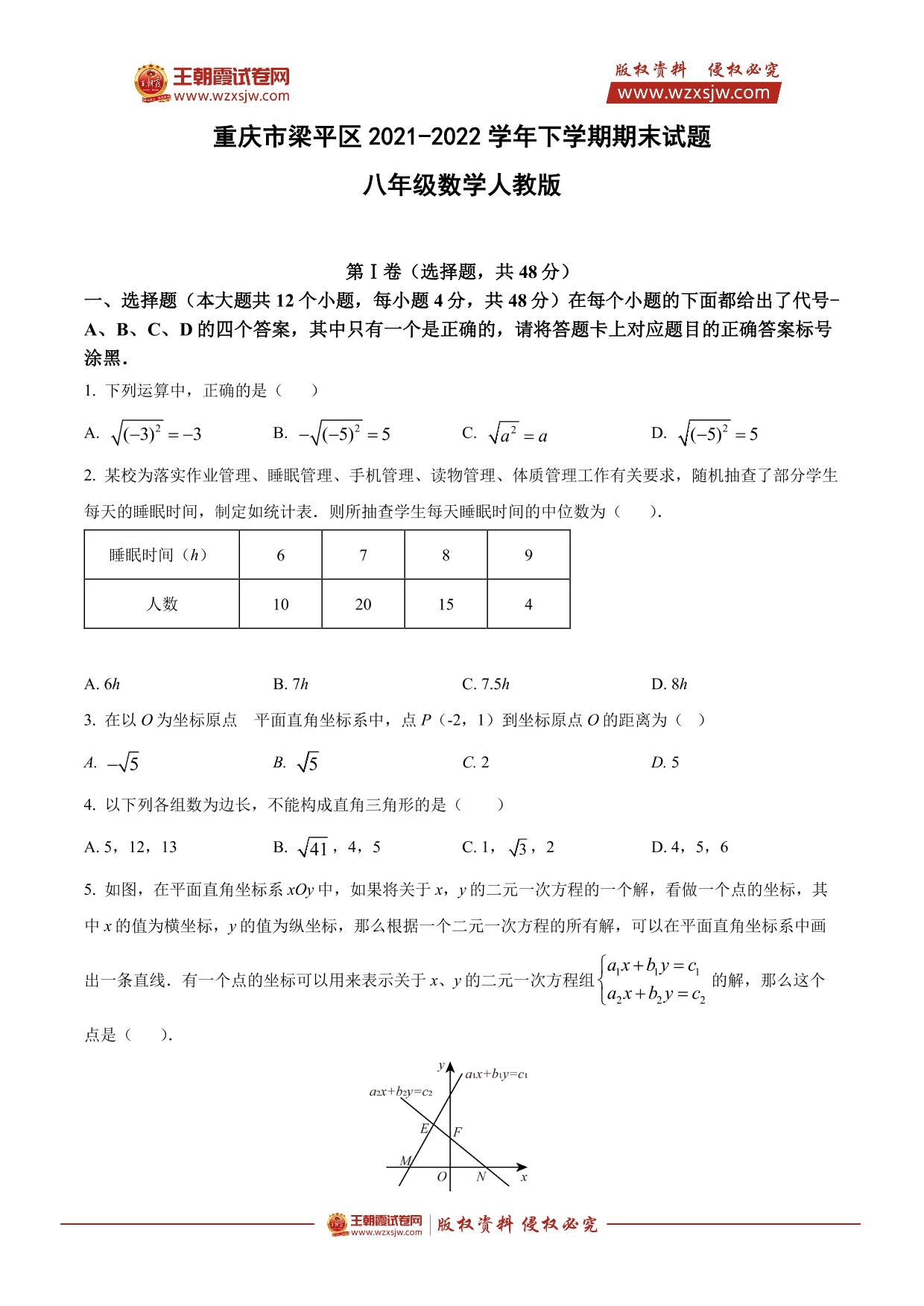 重庆市梁平区2021-2022学年下学期期末试题八年级数学(人教版)