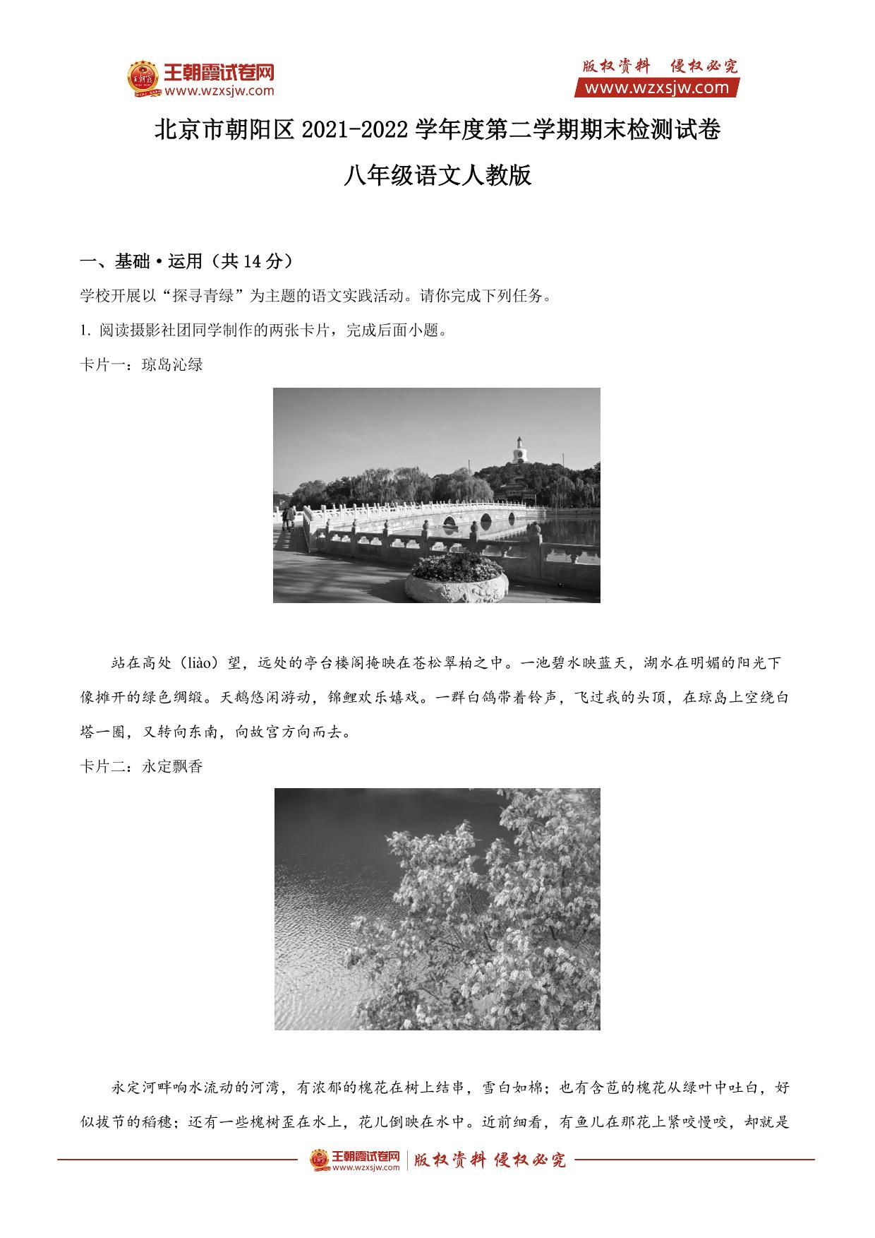 北京市朝阳区2021-2022学年度第二学期期末检测试卷八年级语文(人教版)