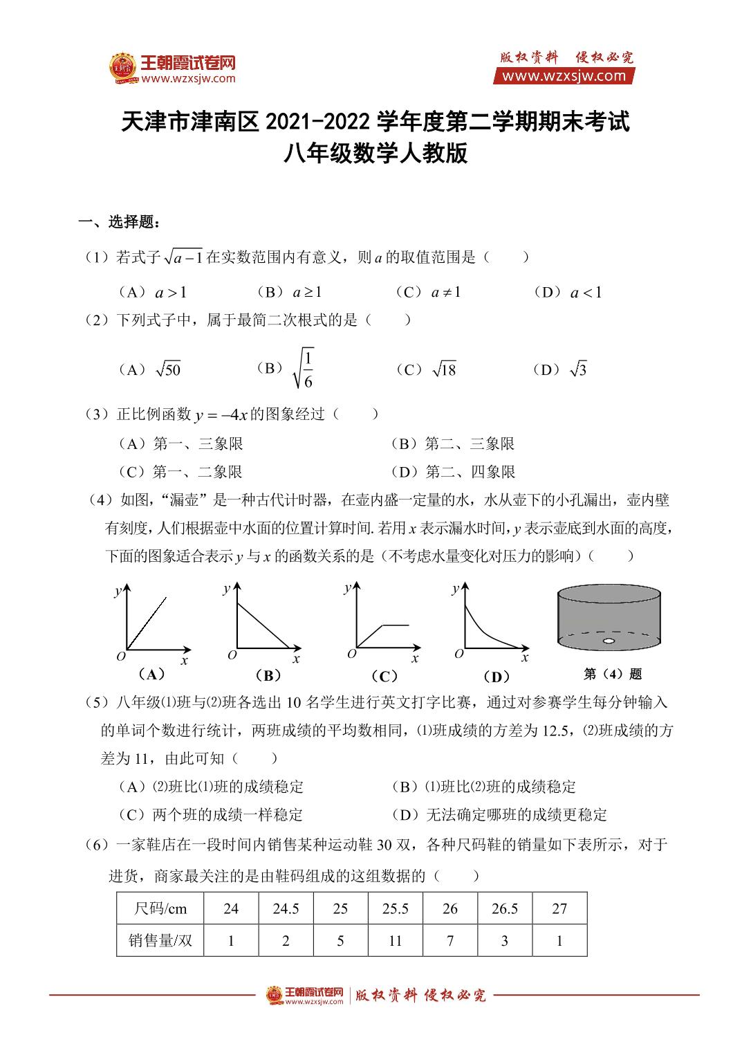 天津市津南区2021-2022学年度第二学期期末考试八年级数学(人教版)