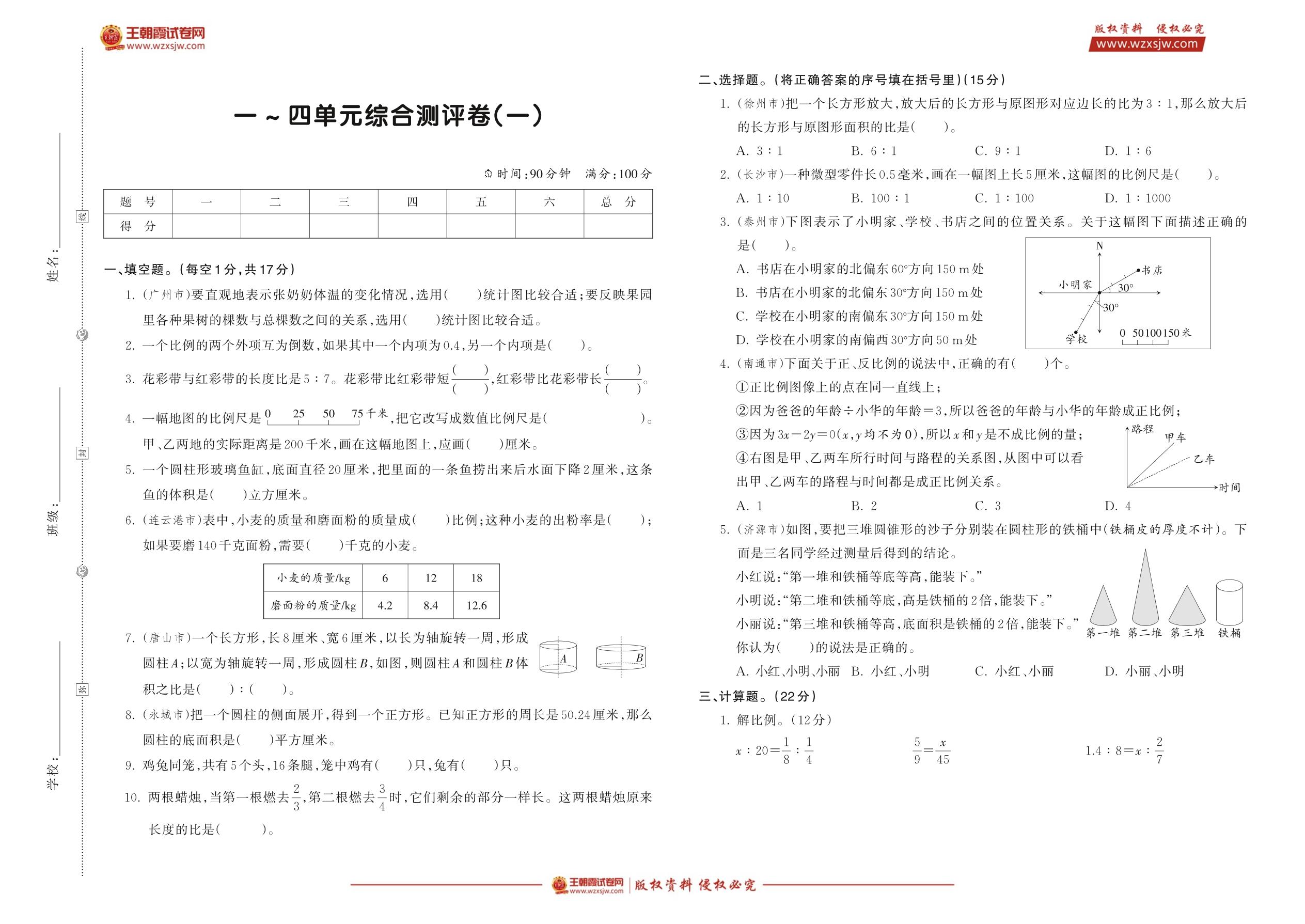 【寒假预习助手·综合测评】一~四单元综合测评卷(一)_R230104141257983