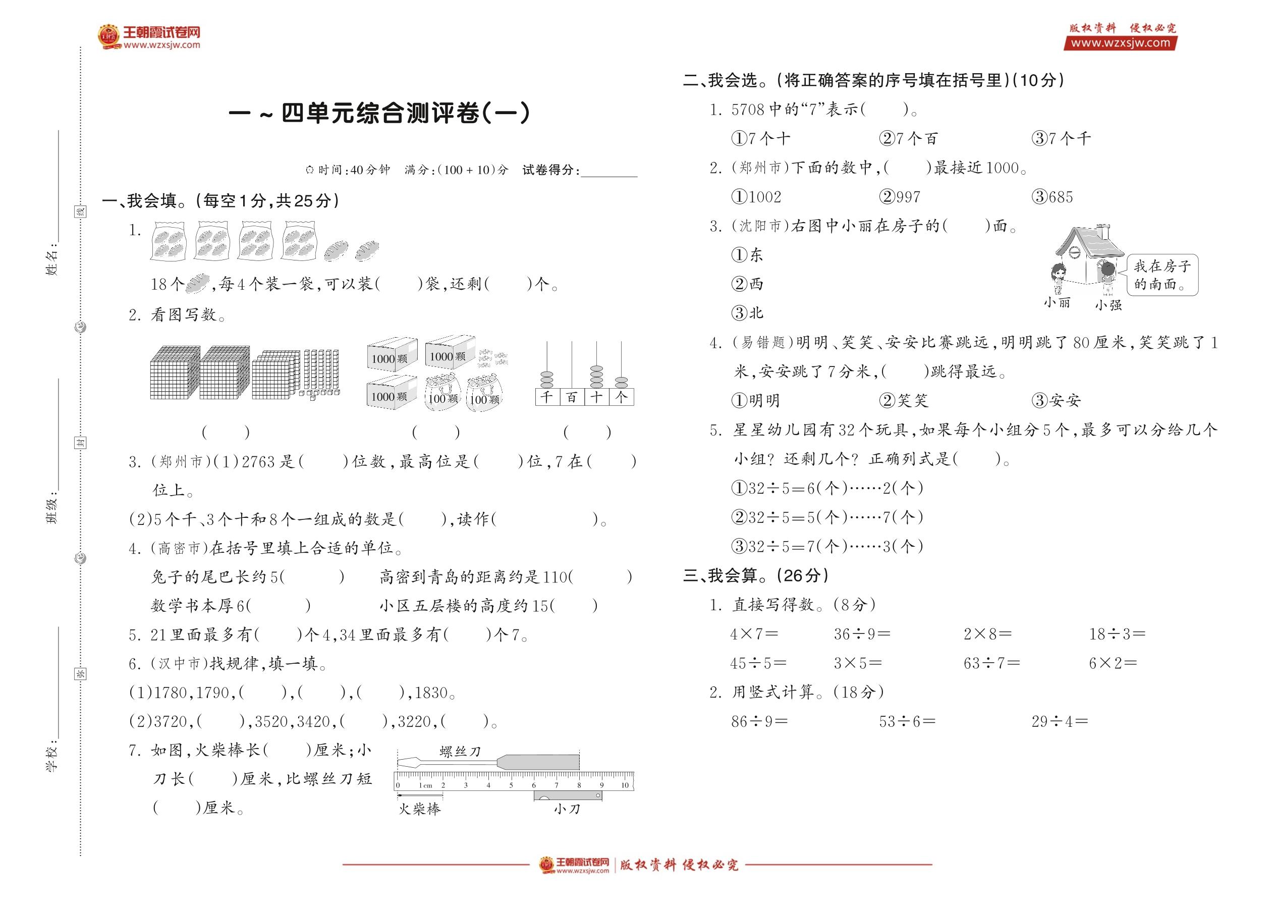 【寒假预习助手·综合测评】一~四单元综合测评卷(一)_R230104142012136