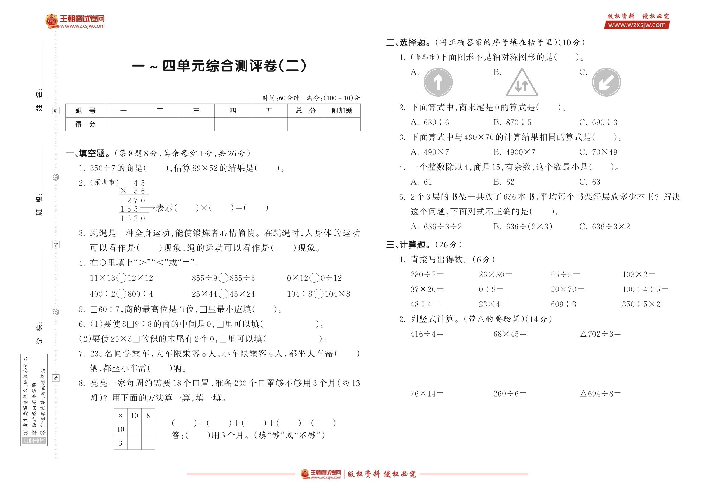 【寒假预习助手·综合测评】一~四单元综合测评卷(二)_R230104142354611