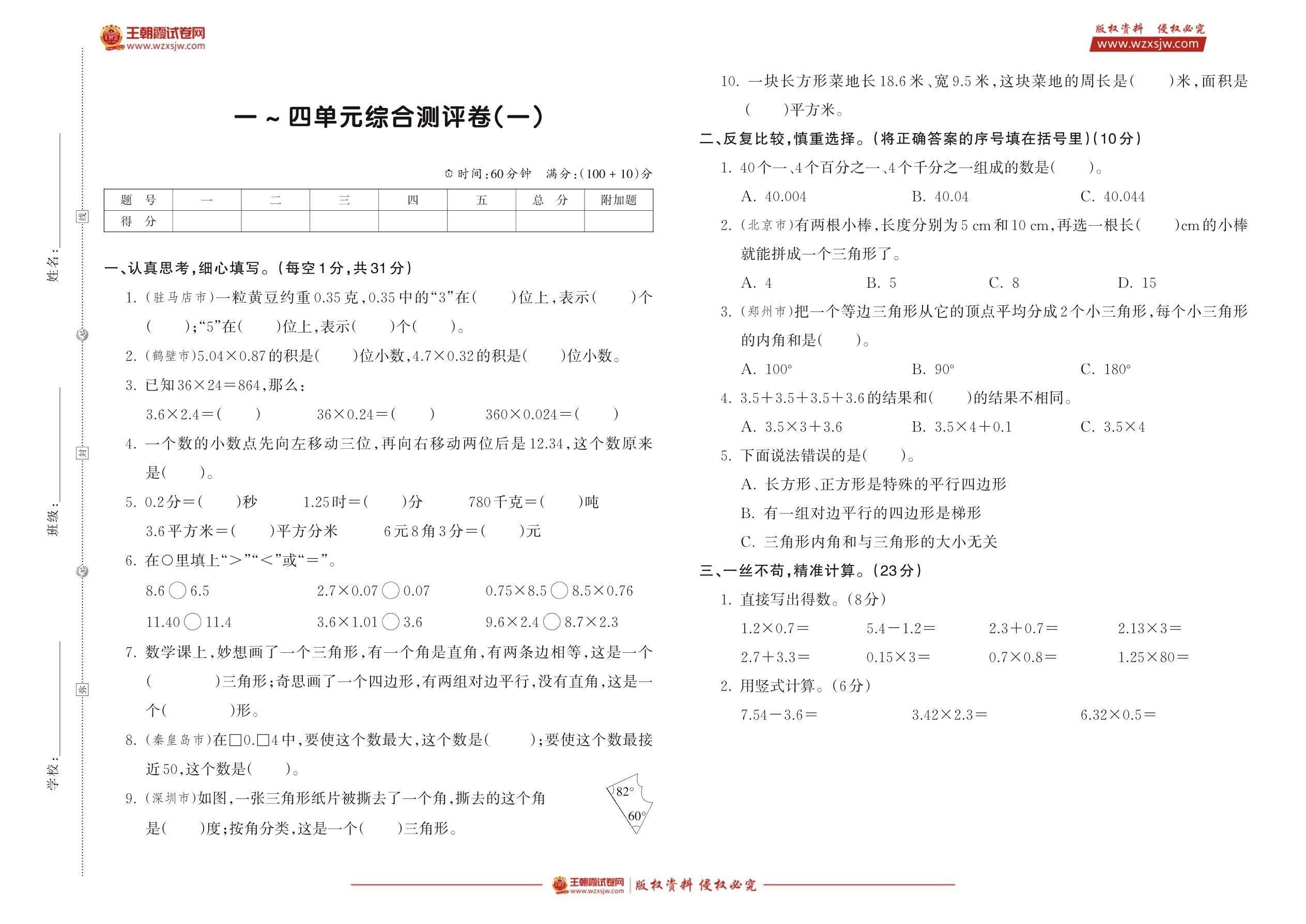 【寒假预习助手·综合测评】一~四单元综合测评卷(一)_R230104143039253