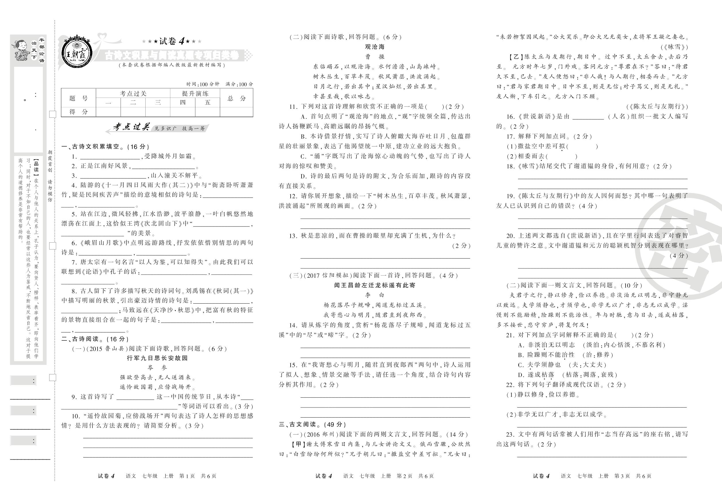 王朝霞期末专项卷七年级上册语文(人教版)_R210802160647【4】
