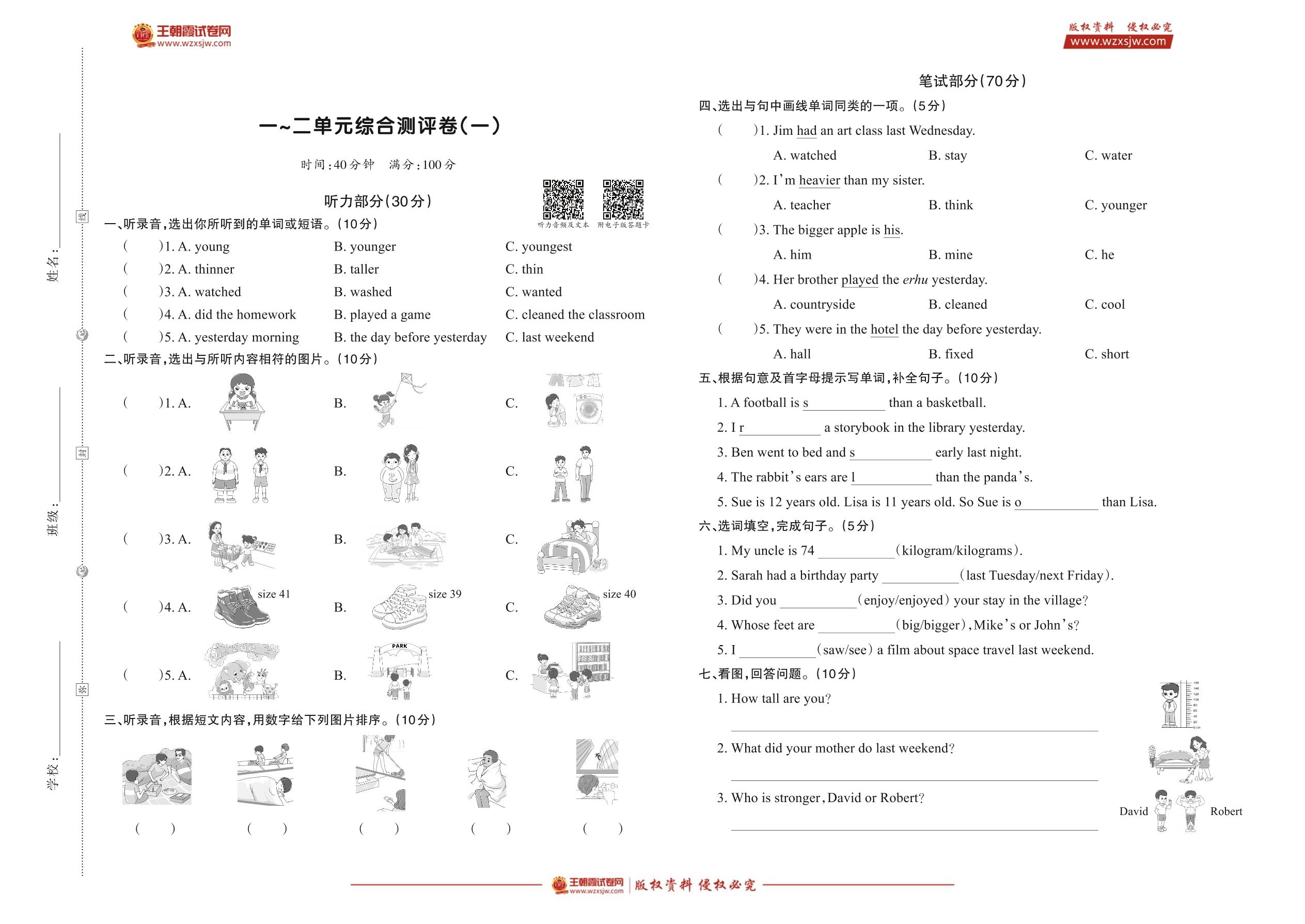 【寒假预习助手·综合测评】一~二单元综合测评卷(一)_R230105142514770
