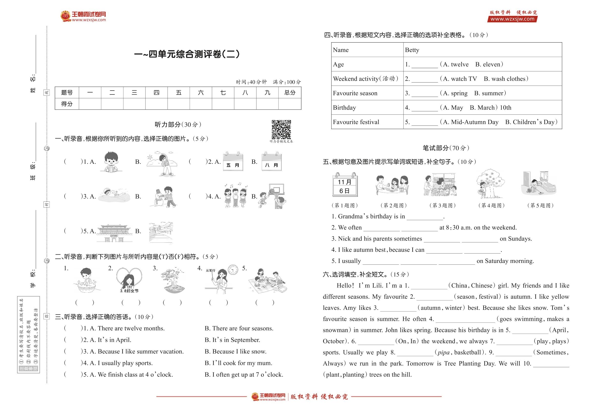 【寒假预习助手·综合测评】一~四单元综合测评卷(二)_R230105153002477